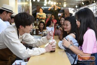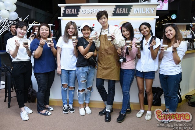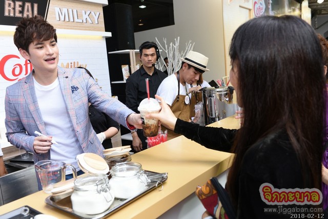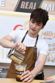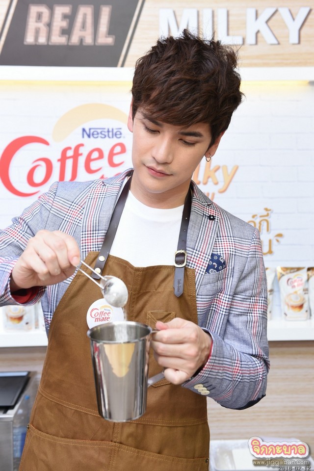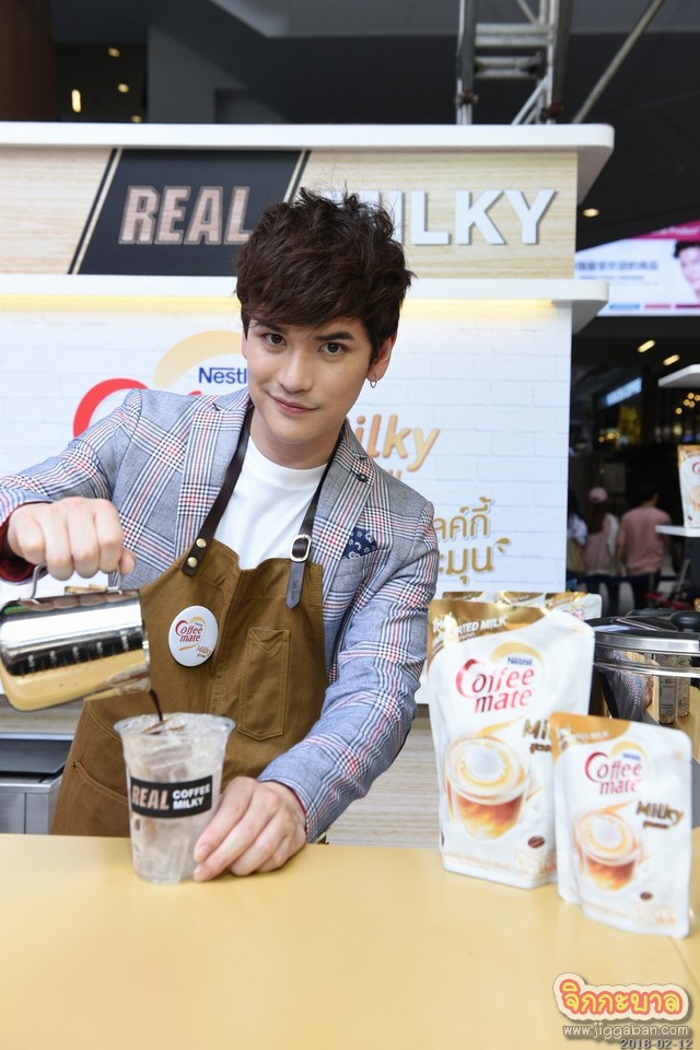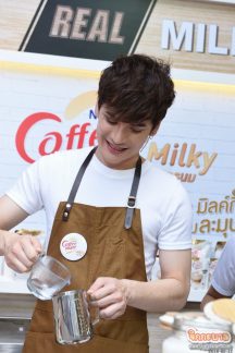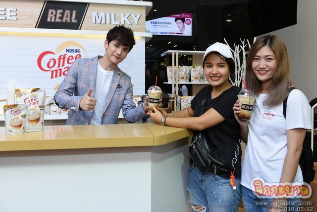 ต่อ ธนภพ ลีรัตนขจร บอกว่า “ตื่นเต้นมากครับเพราะนี่เป็นครั้งแรกของผมเลยในการทำหน้าที่บาริสต้าโดยวันนี้ผมรับหน้าที่สอนทำลาเต้ทั้งสูตรร้อนและสูตรเย็นเป็นกาแฟที่จะได้ความเข้มของกาแฟมาเจอกับรสชาตินุ่มละมุนอย่างลงตัวของ ‘เนสท์เล่ คอฟฟีเมต มิลค์กี้’ สูตรผสมนมแท้ตัวเอกที่มอบความหอมนม เรียกได้ว่าเป็นแก้วที่ใช่ แบบไม่มีอะไรทดแทนสำหรับผมเลยครับ ยิ่งเห็นทุกคนที่ได้รับกาแฟที่ผมชงให้แล้วบอกว่าอร่อยนี่ ชื่นใจสุดๆ ไปเลยครับ ก็อยากฝากให้ทุกคนลองกลับไปชงตามสูตรลับที่ผมบอกนะครับ รับรองว่าอร่อยไม่แพ้ผมชงให้แน่นอน”