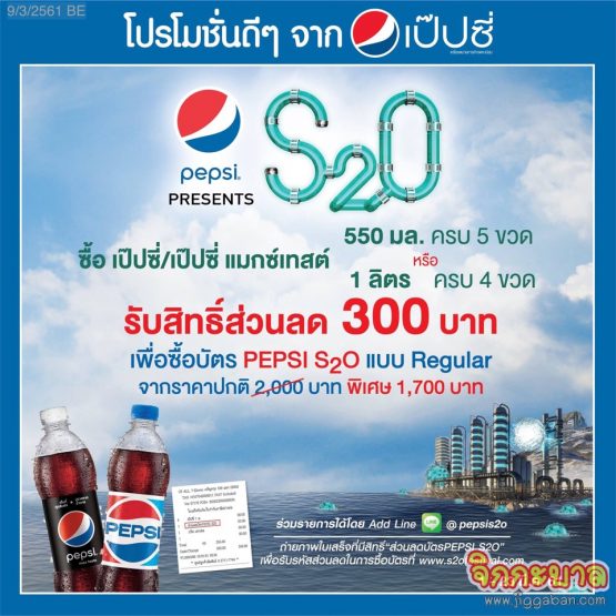 กลับมาอีกครั้งกับ S2O Songkran Music Festival 2018 งานปาร์ตี้สงกรานต์ที่ใหญ่ที่สุดของประเทศ ที่ปีนี้ได้สปอนเซอร์หลักอย่างเป๊ปซี่ มามอบความมันส์สุดขั้วตลอด 3 วันเต็มๆ พร้อมปล่อยโปรโมชั่นเด็ด มอบส่วนลดพิเศษให้แฟนๆได้จับจองบัตรกัน เพียงซื้อเป๊ปซี่ หรือเป๊ปซี่ แมกซ์เทสต์ 550 มล. ครบ 5 ขวด หรือ 1 ลิตร ครบ 4 ขวด รับทันที สิทธิ์ส่วนลด 300 บาท สำหรับบัตรประเภท Regular จากราคาปกติ 2,000 บาท พิเศษเหลือเพียง 1,700 บาทเท่านั้น! ตั้งแต่วันนี้ถึง 23 มีนาคมนี้ หรือจนหว่าบัตรจะหมด บอกเลยว่างานนี้ห้ามช้า รีบไปจับจองบัตรกันได้ที่ www.s2ofestival.com แล้วเตรียมไปสนุกกัน ในวันที่ 13 – 15 เมษายนนี้ ณ Live Park ถนนพระราม 9!