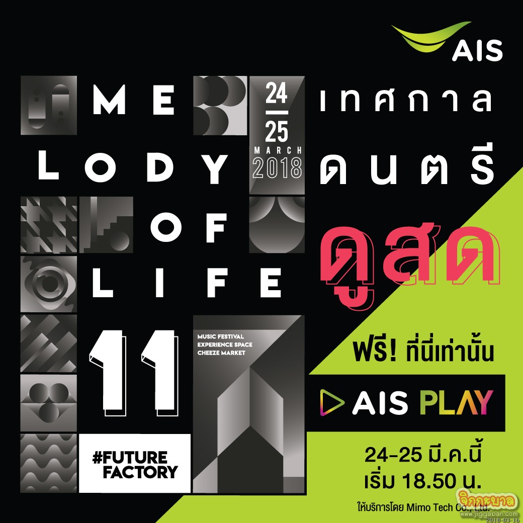 คอดนตรีมีเฮ!! เอไอเอส จัดถ่ายทอดสด “Melody of Life ครั้งที่ 11” (เมโลดี้ ออฟ ไลฟ์) งานเทศกาลดนตรีสุดมันส์กลางเมือง เต็มอิ่มกับไลฟ์คอนเสิร์ต 8 วงดนตรีสุดฮิตขวัญใจวัยมันส์ ได้แก่ Mild (มายด์), Win Sqweez Animal (วิน สควีซ แอนนิมอล), สิงโต นำโชค, Slot Machine (สล็อต แมชชีน), Scrubb (สครับบ์), The Toys (เดอะทอยส์), The Parkinson x Boy Trai (เดอะ พาร์กินสัน และบอย ตรัย) และ Helmetheads (เฮลเมทเฮดส์) ถ่ายทอดสดส่งตรงจากเวที Chang Music Connection Outdoor Stage ที่ศูนย์การค้าเซ็นทรัลเวิลด์ แฟนๆ ห้ามพลาด! เตรียมรับชมได้บนแอป AIS PLAY และกล่อง AIS PLAYBOX ในวันที่ 24-25 มีนาคมนี้ เวลา 18.50 น. เป็นต้นไป