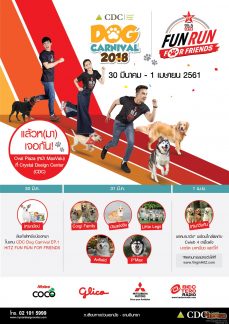 คริสตัล ดีไซน์ เซ็นเตอร์ (ซีดีซี) ร่วมกับ คลื่นวิทยุ 95.5 เวอร์จิ้น ฮิตซ์ ชวนคนรักสุนัขจูงน้องหมามาร่วมงานวิ่งการกุศลในงาน “CDC Dog Carnival Ep.Hitz Fun Run for Friends” (ซีดีซี ด็อก คาร์นิวัล อีพี ฮิตซ์ ฟัน รัน ฟอร์ เฟรนด์) เพื่อหารายได้สมทบทุนมูลนิธิเพื่อสุนัขในซอยช่วยเหลือสุนัขและแมวจรจัด พร้อมพบกิจกรรมภายในงาน อาทิ การแสดงน้องหมาแสนรู้, ช็อปสินค้าสัตว์เลี้ยงสุดชิคและชิงของรางวัล ในระหว่างวันศุกร์ที่ 30 มีนาคม – วันอาทิตย์ที่ 1 เมษายน 2561 เวลา 11.00-20.00 น. ณ บริเวณ โอวัล พลาซ่า คริสตัล ดีไซน์ เซ็นเตอร์ (ซีดีซี) เลียบทางด่วนเอกมัย-รามอินทรา โดยมีกิจกรรมมากมาย ดังนี้