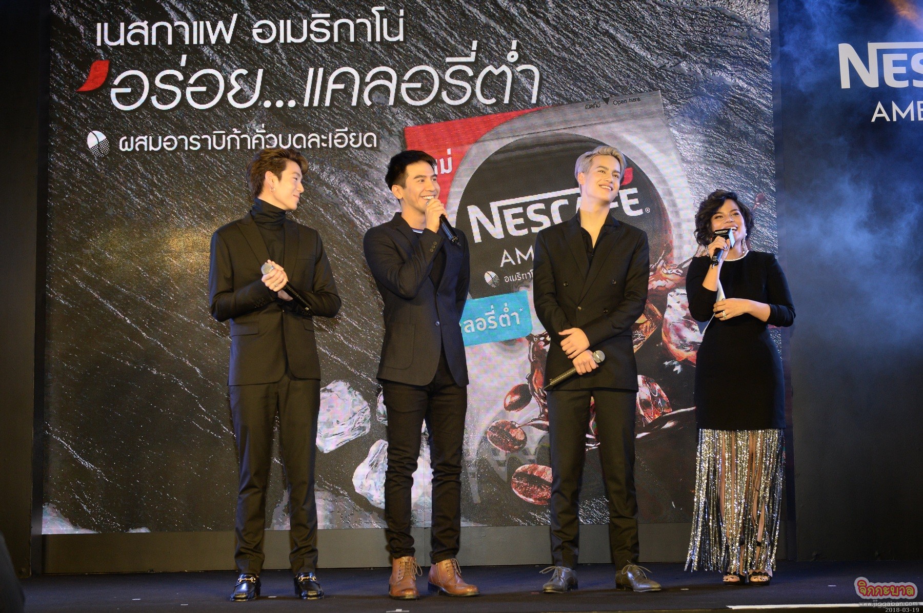 กรุงเทพฯ – 19 มีนาคม 2561:พี่หมื่น‘โป๊ป – ธนวรรธน์ วรรธนะภูติ’ พระเอกละครดังเรตติ้งกระฉูดขวัญใจออเจ้าทั่วเมืองไทย นำทีม‘เจเจ – กฤษณภูมิ พิบูลสงคราม’ และ ‘ไอซ์ – พาริส อินทรโกมาล’สองหนุ่มไอดอลขวัญใจวัยรุ่นจากโปรเจค 9×9 (ไนน์ บาย นาย) เดินแฟชั่นโชว์สุดคูลเปิดตัว “เนสกาแฟ อเมริกาโน่” สร้างปรากฏการณ์ เดอะนิวแบล็คแห่งวงการกาแฟ ชวนคนรุ่นใหม่เติมความสดชื่นคลายร้อนกับเมนูกาแฟอเมริกาโน่สไตล์คาเฟ่จากเนสกาแฟครั้งแรกของโลกสำหรับคอกาแฟรุ่นใหม่โดยเฉพาะผสมกาแฟอาราบิก้าคั่วบดละเอียดด้วยเทคโนโลยี เอกสิทธิ์เฉพาะของเนสกาแฟ เพื่อมอบสัมผัสนุ่มละมุนพร้อมรสชาติและกลิ่นหอมกรุ่นของกาแฟคั่วบดแท้ๆ ในทุกแก้ว ชงเองได้ง่ายๆ สดชื่นในแบบเย็นและที่สำคัญยังเป็นเครื่องดื่มทางเลือกสุขภาพ แคลอรี่ต่ำ อร่อยเบาๆ เพียง 35กิโลแคลอรี่ต่อซอง ไม่ต้องกังวลกับปริมาณน้ำตาลและไขมัน รับรองถูกใจคอกาแฟแน่นอนซึ่งงานเปิดตัวได้จัดขึ้นเมื่อเร็วๆ นี้ที่สยามสแควร์ วัน นาทีนี้ต้องยกนิ้วให้กับความโด่งดังของพระเอกหนุ่มสุดคูล ‘โป๊ป– ธนวรรธน์’ ที่ไม่ว่าเยื้องกายไปที่ใด ก็จะมีขบวนทัพออเจ้าเหล่าแฟนคลับมาให้กำลังใจอย่างท่วมท้น ทำเอาลานสยามสแควร์วันแน่นไปถนัดตา ล่าสุดสลัดผ้านุ่งโจงกระเบน เปลี่ยนลุคใส่สูทชุดดำเป็นหนุ่มสมัยใหม่สุดคูลมาเดินแบบแฟชั่นโชว์เปิดตัวเนสกาแฟอเมริกาโน่ พร้อมหนุ่มรุ่นน้องอย่างเจเจและไอซ์ ซึ่งได้รับแรงบันดาลใจมาจาก ‘เดอะนิวแบล็ค’ สะท้อนถึงกระแสการดื่มกาแฟอเมริกาโน่สุดอินในซัมเมอร์นี้