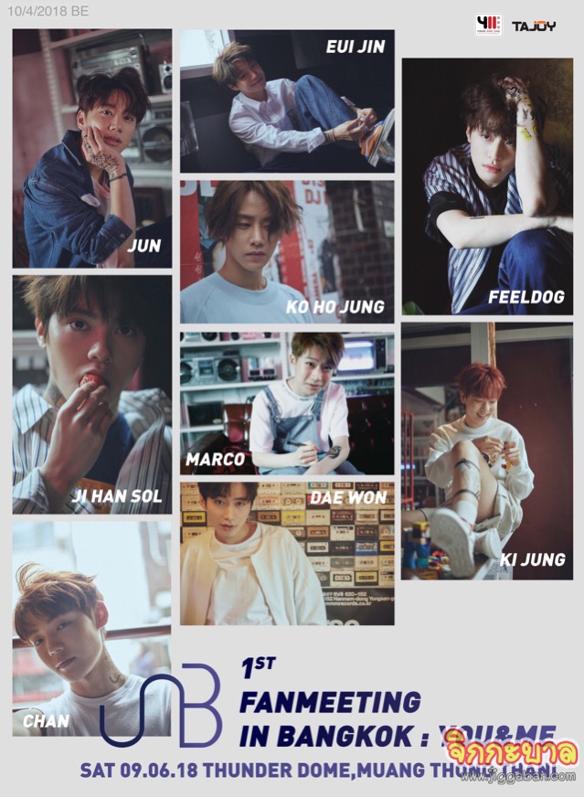 หลังประสบความสำเร็จจากรายการเรียลลิตี้ชื่อดังภายใต้การดูแลของสถานีโทรทัศน์ KBS ประเทศเกาหลีใต้ อย่างรายการ The Unit (เดอะยูนิต) บอสกึ้ง รีบเซ็นสัญญาอิมพอร์ต 9 หนุ่ม “UNB” (ยูเอ็นบี) มาโชว์ที่ไทยทันที ล่าสุด พวกเค้าเพิ่งเปิดตัวอัลบั้มใหม่ที่มีชื่อว่า “UNB – BOYHOOD” (ยูเอ็นบี-บอยฮูด) ออกมา ด้วยความแรงของ “UNB” (ยูเอ็นบี) ก็สามารถคว้าอันดับ 1 ของการค้นหาบน Naver ทันที รวมถึงเพลงในอัลบั้มก็กำลังไต่ขึ้นชาร์ตเพลงต่างๆของประเทศเกาหลี งานดีขนาดนี้พลาดไม่ได้ เตรียมตัวไปฟินแบบใกล้ชิดกับ “ UNB 1st FANMEETING
