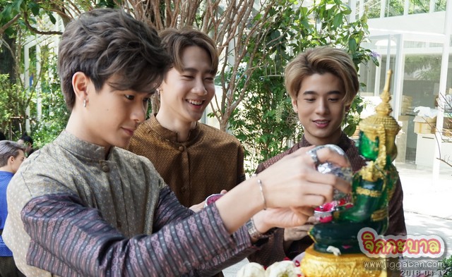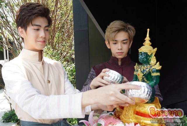 โดย “ต่อ-ธนภพ” เป็นตัวแทนกล่าวว่า… “สำหรับวันนี้ก็ดีใจมากๆ ที่ได้มาสรงน้ำพระร่วมกับน้องๆ 9×9 (ไนน์ บาย นาย)ทุกคน ถึงพวกเราจะเป็นคนรุ่นใหม่แต่ก็ยังไม่ลืมประเพณีไทย ถามว่าผมมีแพลนจะทำอะไรช่วงวันสงกรานต์ หรือปีใหม่ไทยนี้ก็คงเหมือนๆ ทุกปีคือสรงน้ำพระ รดน้ำดำหัวผู้ใหญ่ที่เคารพขอพรเพื่อความเป็นสิริมงคล แต่ปีนี้มีแพลนพิเศษก็คือผมจะไปทำบุญที่วัด ส่วนใครกำลังจะวางแผนไปเล่นน้ำสงกรานต์ตามงานเฟสติวัลต่างๆ ก็ขอให้งดแอลกอฮอล์นะครับ เครื่องดื่มมึนเมาอาจทำให้เราคึกคะนองจนขาดสติซึ่งจะนำไปสู่อันตรายต่อตัวเอง และคนใกล้ตัวได้ อย่าลืมดูแลตัวเอง และก็ขอให้มีความสุขในวันปีใหม่ไทยนี้ครับ”“ต่อ-ธนภพ” นำทีม “9×9” สรงน้ำพระ