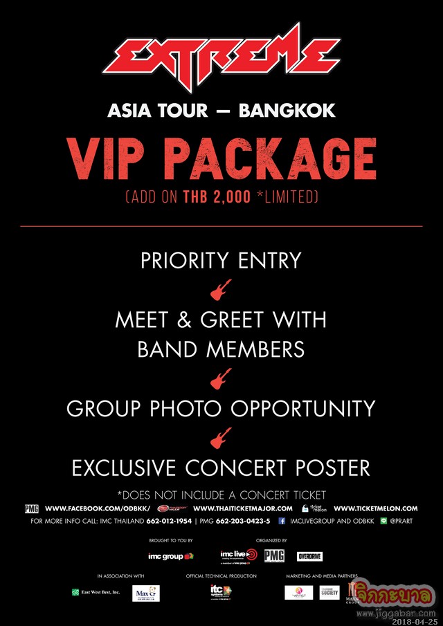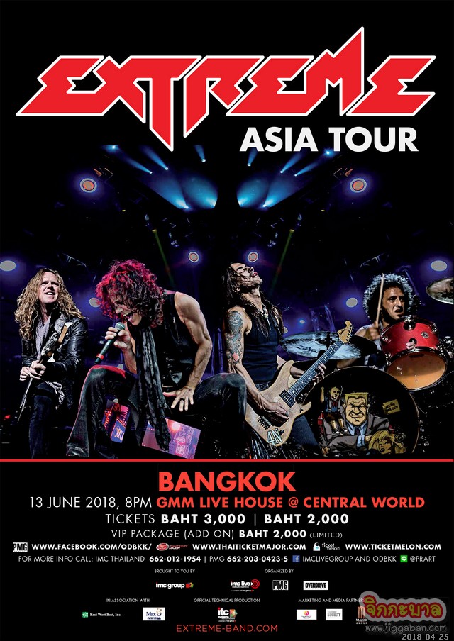 การันตีความมัน และไม่อยากให้พลาดด้วยประการทั้งปวง พร้อมกระโดดไปกับวง เอ็กซ์ตรีม (EXTREME) วงร็อกระดับตำนานได้ในพุธที่ 13 มิถุนายน 2561 ณ GMM Live House (ศูนย์การค้าเซ็นทรัลเวิล์ด ชั้น 8)