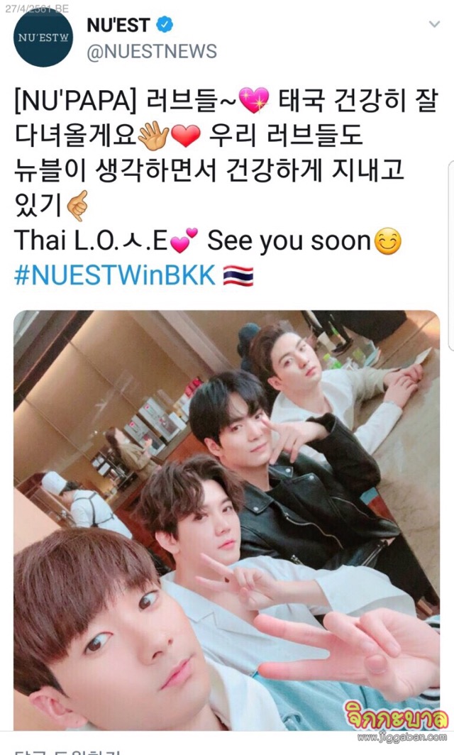 สี่หนุ่ม “นิวอีสต์ ดับเบิลยู” (NU’EST W) อัปเดตโซเชียลเน็ตเวิร์กเมื่อเช้านี้ก่อนออกเดินทางมายังประเทศไทย เพื่อแสดงคอนเสิร์ต “นิวอีสต์ ดับเบิลยู คอนเสิร์ต <ดับเบิล ยู> อิน แบงคอก” (NU’EST W CONCERT