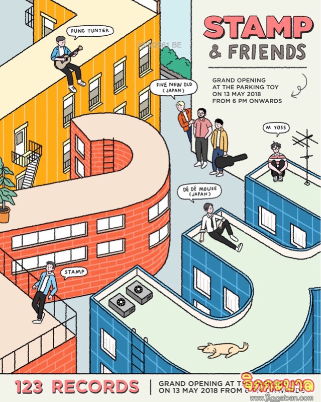 งานนี้มีวงเพื่อนๆมาร่วมด้วย อาทิ De’ De’ Mouse และ วง Five New Old เพื่อนจากญี่ปุ่นมาร่วมด้วย “STAMP & Friends by 123records Live Show” วันอาทิตย์ที่ 13 พฤษภาคม 2561 ณ Parking Toy เกษตร-นวมินทร์ บัตรราคา 1230 บาท