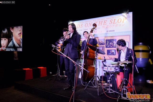 ซึ่งบรรยากาศภายในงานมีแขกผู้มีเกียตริ สื่อมวลชน และแฟนๆมาร่วมงานกันอย่างคับคั่ง งานนี้ “มงคลซินีม่า” ขอเปิดตัวงานด้วยบรรยากาศสบายๆโดยมีน้องๆจากวิทยาลัยดุริยางคศิลป์ มหาวิทยาลัย มหิดล มาร่วมบรรเพลงดนตรีแจ๊สสดๆ ที่ปรากฎในภาพยนตร์ให้เราได้ฟังเพลินๆ ไม่ว่าจะเพลง Moanin, My Favorite Things และ But not for me ก่อนเปิดตัวแขกรับเชิญสุดพิเศษที่มาร่วมพูดคุย ถึงความชื่นชอบด้านภาพยนตร์ญี่ปุ่น และนักแสดงนำของภาพยนตร์ นำโดย น้องพิม และน้องเฟม จากวง Sweat16!, คชา นนทนันท์ อัญชุลีประดิษฐ์ และ 3 หนุ่มจาก ConversationThailand พอร์ช ศิฑา กาญจนอลงกรณ์, บอส ธปณัฐ อธิคมโภคิน , ฟูล พิษณุพงศ์ วันคำ ก่อนที่จะส่งทุกท่านเข้าชมภาพยนตร์พร้อมกัน