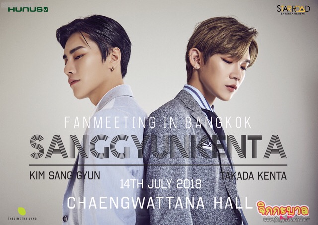 จัดเต็มความฟินแบบไม่หยุดยั้ง สำหรับผู้จัดใจดี “เดอะ ไลม์ (ไทยแลนด์)” เพราะแค่ครึ่งปีแรกก็พาศิลปินขวัญใจแฟนคลับชาวไทยพาเหรดมาแลนด์ดิ้งเสิร์ฟความสนุกกันแบบถี่ๆ ล่าสุดก็ไม่พลาดคว้า 2 หนุ่มหน้าใส SANGGYUN ( ซังกยุน ) และ KENTA ( เคนตะ ) สองขั้วความต่างที่รวมตัวกันแล้วรับรองว่าลงตัวแบบสุดๆ ให้แฟนคลับชาวไทยได้เจอแบบเอ็กซ์คูลซีฟ ในงาน 2018 SANGGYUN KENTA FANMEETING IN BANGKOK ที่จะจัดขึ้นในวันเสาร์ที่ 14 กรกฎาคม 2561 ณ แจ้งวัฒนะฮอลล์ ศูนย์การค้าเซ็นทรัลพลาซ่าแจ้งวัฒนะ