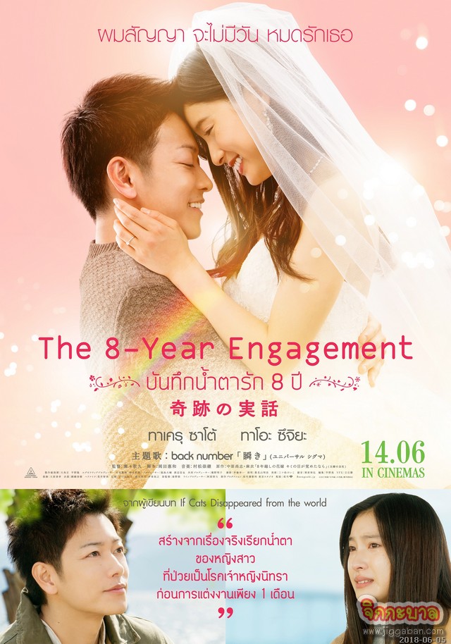 “ ผมสัญญาจะไม่มีวันหมดรักเธอ “ ทาเครุ ซาโต้ เรียกน้ำตาสาว ๆ ทั่วญี่ปุ่น ในภาพยนตร์สร้างจากเรื่องจริง The 8-Year Engagement บันทึกน้ำตารัก 8 ปี โดยผู้เขียนบท if cats disappeared from the world และ Be with you