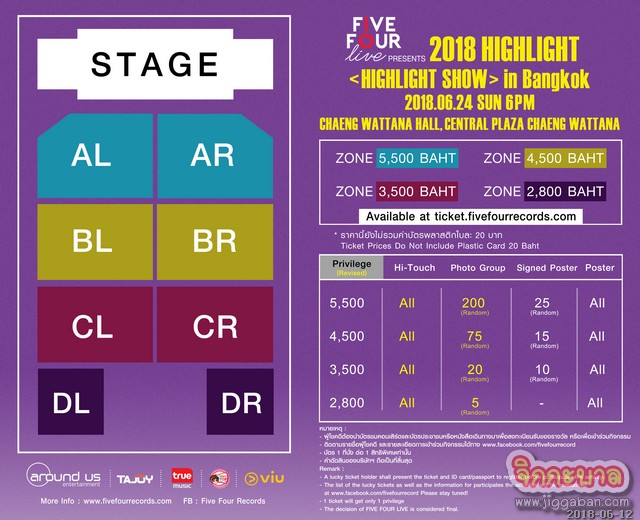 4 หนุ่มไฮไลท์ : ยง จุนฮยอง (YONG JUNHYUNG), ยัง โยซอบ (YANG YOSEOP), ลี กีกวัง (LEE GIKWANG) และ ซน ดงอุน (SON DONGWOON) ส่งคลิปสุดพิเศษถึงไลท์ไทยยืนยันเจอกันแน่นอนในวันอาทิตย์ที่ 24 มิถุนายนนี้ และเพื่อเป็นการขอบคุณแฟนๆ ที่ให้การสนับสนุนงานครั้งนี้ด้วยดีเสมอมา ผู้จัด FIVE FOUR LIVE และ Around Us Entertainment ขอแจ้งเพิ่มสิทธิ All Hi-Touch และเพิ่มจำนวนสิทธิ Photo Group ให้กับผู้ซื้อบัตร 2018 HIGHLIGHT in Bangkok ภายในวันเสาร์ที่ 16 มิถุนายน 2561 และจะประกาศผู้โชคดีในวันอาทิตย์ที่ 17 มิถุนายน 2561 (การตัดสินของคณะกรรมการถือเป็นสิ้นสุด) ไลท์ทั้งหลายอย่าลืมไปให้กำลังใจทั้ง 4 หนุ่มวง ไฮไลท์ กันนะจ๊ะ…