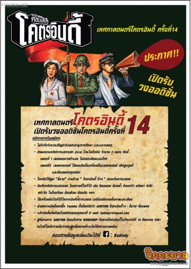 ประกาศ!! เทศกาลดนตรี โคตรอินดี้ ครั้งที่ 14 “เวทีนี้ห้ามพลาด” เปิดรับออดิชั่น วงดนตรี ทุกสายพันธุ์ เพื่อคัดเลือกให้ขึ้นแสดงบนเวที ของเทศกาลดนตรีของชาวอินดี้แห่งปี