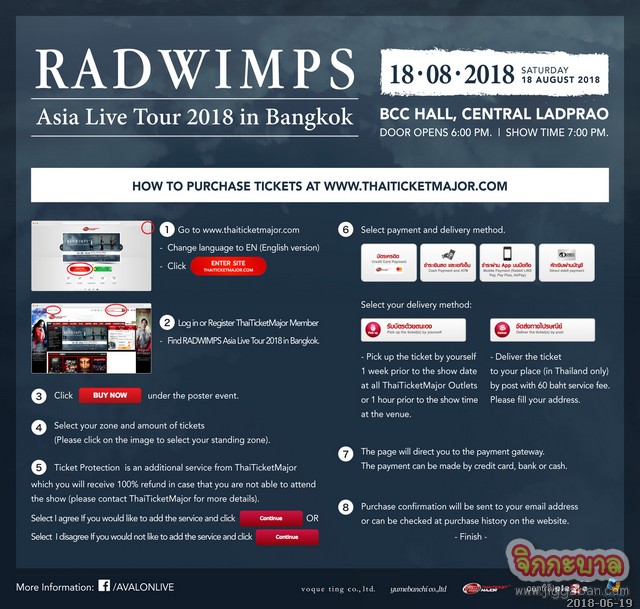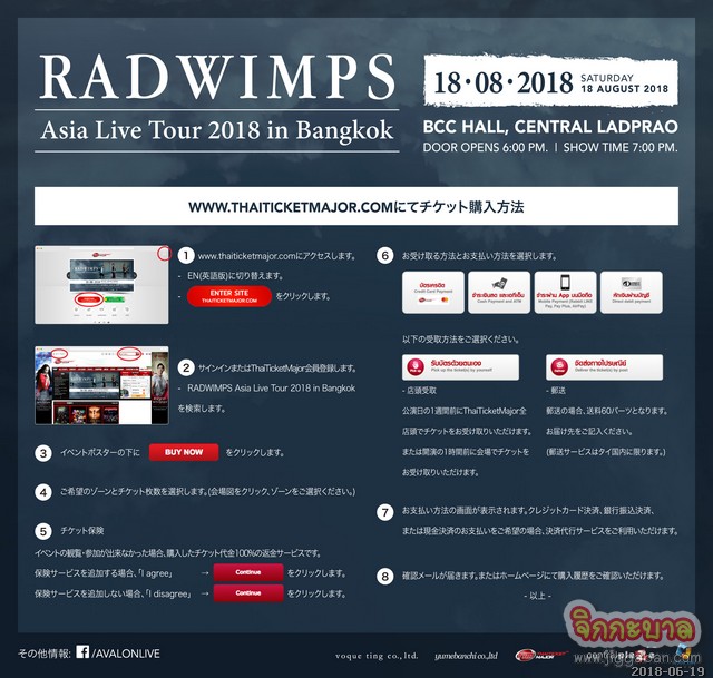 แฟนๆ ตัวจริงห้ามพลาดกับคอนเสิร์ต “RADWIMPS Asia Live Tour 2018 in Bangkok” ที่จะเปิดขายบัตรใน วันเสาร์ที่ 30 มิถุนายน 2561 ตั้งแต่เวลา 10.00 น. เป็นต้นไป ทาง ไทยทิคเก็ตเมเจอร์ https://bit.ly/2leRGxt บัตรราคา 3,500 และ 2,500 บาท (บัตรยืนทั้งหมด) รายละเอียดเพิ่มเติมสามารถติดตามได้ที่ https://www.facebook.com/AVALONLIVE #RADWIMPS180818