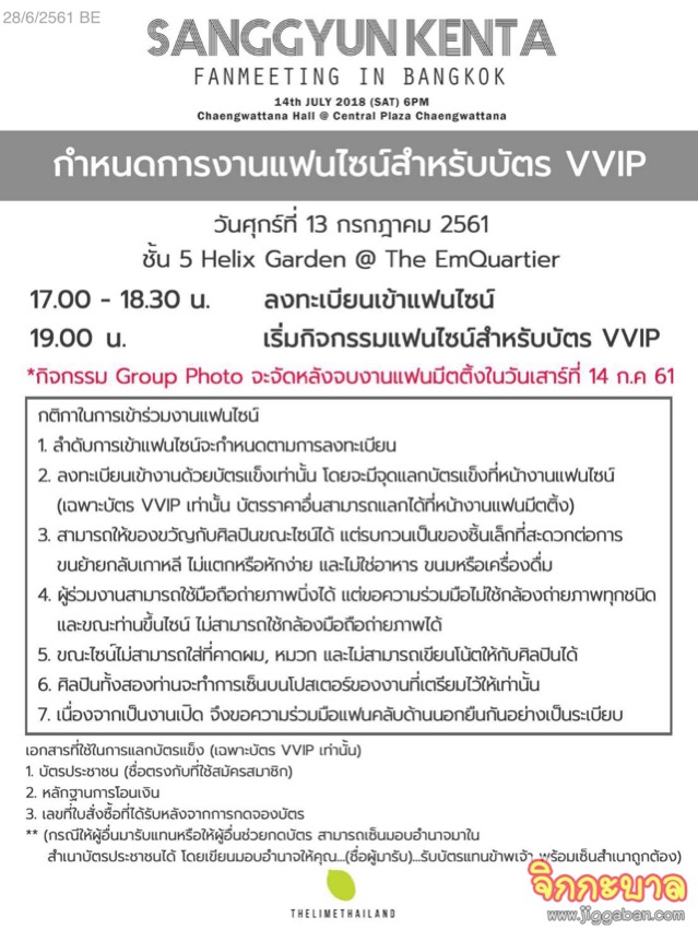 ยิ่งใกล้วันจะได้เจอกัน เชื่อเลยว่าแฟนคลับชาวไทยยิ่งใจเต้นรัว เพราะนอกจากผู้จัดใจดี “เดอะ ไลม์ (ไทยแลนด์)” จะคอนเฟิร์มพา 2 หนุ่มคู่หูคู่ซี้ SANGGYUN ( ซังกยุน ) และ KENTA ( เคนตะ ) มาเจอแฟนๆ ในงาน 2018 SANGGYUN KENTA FANMEETING IN BANGKOK พวกเขาทั้งสองคนก็ยังไม่หยุดส่งตรงความฟินให้แฟนๆ ที่รอพวกเขาอยู่แบบทุ่มสุดตัว ด้วยการเขียนบอกรัก และคิดถึงเป็นภาษาไทยด้วยตัวเอง โดยหนุ่ม “ซังกยุน” เขียนคำว่า ‘ผมรักคุณ’ ด้าน “เคนตะ” ไม่น้อยหน้าเขียนคำว่า “ผมคิดถึงคุณ” หนุ่มๆ จัดหนักขนาดนี้แล้ว ไม่มาหาไม่ได้แล้ว เพราะการเขียนภาษาไทยเรียกว่าเป็นแค่น้ำจิ้มเท่านั้น งานวันจริงรับรองว่ามีโมมเม้นต์เด็ดๆ ดีๆ รออยู่อีกเพียบ!!
