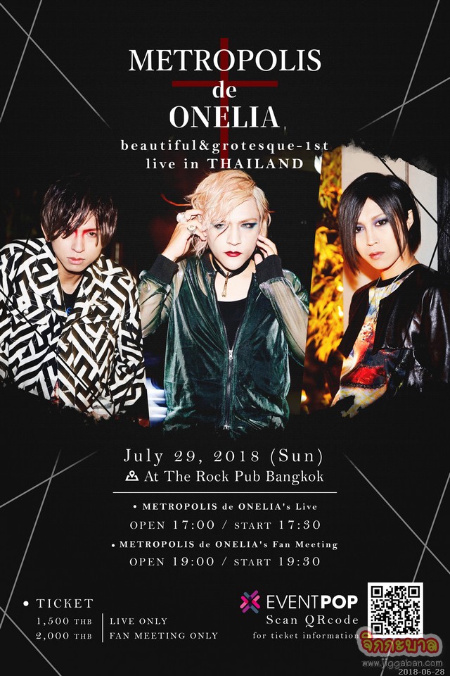 แล้วทาง อีเว้นท์ ป็อปhttp://go.eventpop.me/metropolisdeonelia บัตรราคา 1,500 บาท (Live Only)2,000 บาท (Fan Meeting Only) ติดตามรายละเอียดเพิ่มเติมผ่านทางhttps://www.facebook.com/jrockencryption/