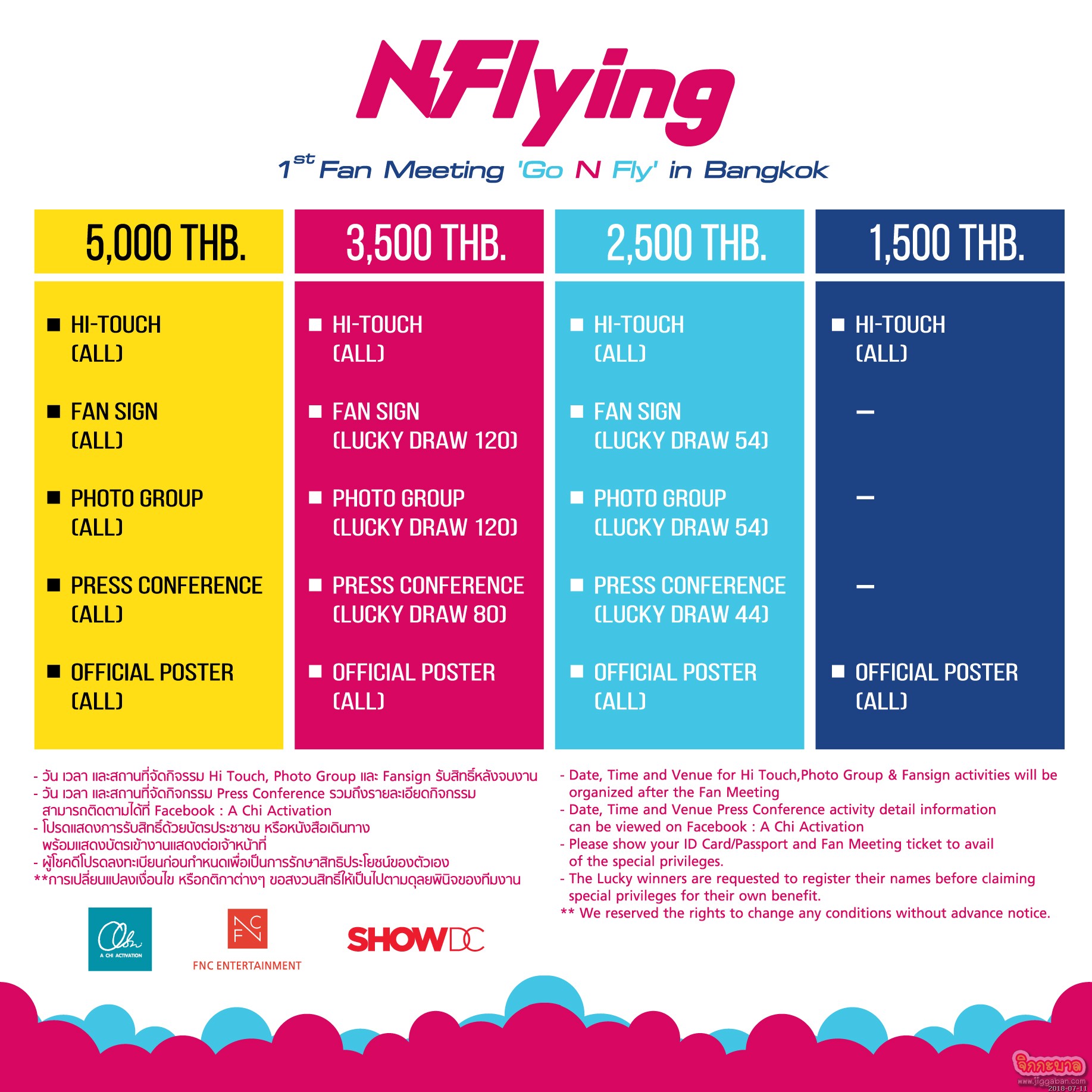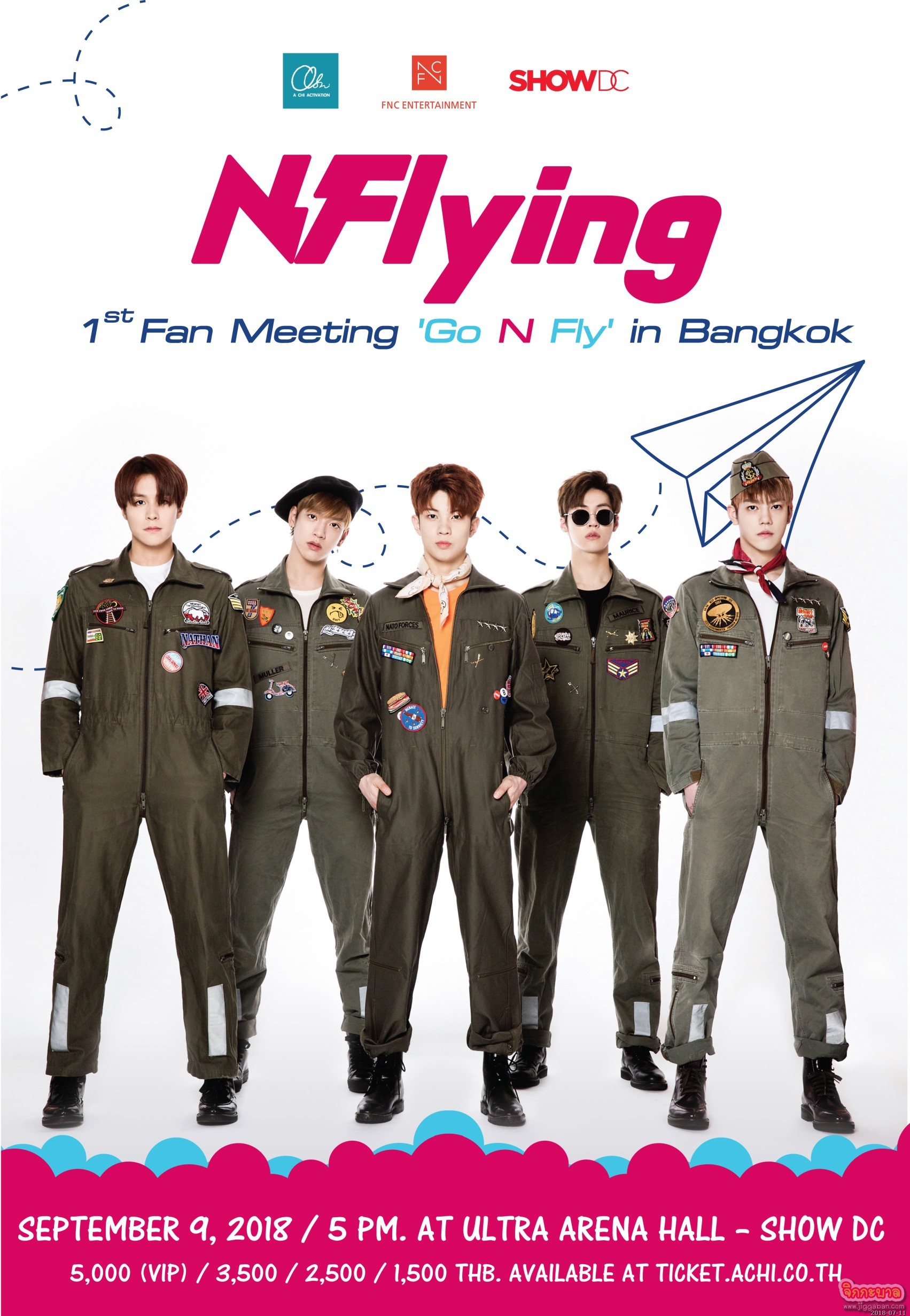 เมื่อ “เอ็น.ฟลายอิ้ง” (N.Flying) จะบินมาหา N.Fia ชาวไทย ถึงที่นี่ งานนี้เลยไม่อยากให้ทุกคนพลาด รักจริงต้องไม่ทิ้งกันนะ! รวมพลคนรักเด็กบินกันที่ “2018 เอ็น.ฟลายอิ้ง เฟิร์ส แฟน มีตติ้ง ‘โก เอ็น ฟลาย’ อิน แบงคอก” (2018 N.Flying 1st Fan meeting ‘Go N Fly’ IN BANGKOK) ในวันอาทิตย์ที่ 9 กันยายน 2561 นี้ เวลา 17.00 น. ณ อัลตร้า อารีน่า ชั้น 6 ศูนย์การค้าโชว์ ดีซี โดยจะเริ่มจำหน่ายบัตรในวันเสาร์ที่ 4 สิงหาคม 2561 เวลา 10.00 น.(ประเทศไทย) ทาง https://ticket.achi.co.th บัตรราคา 5,000 (VIP) /3,500 / 2,500 และ1,500 บาท พร้อมสิทธิพิเศษให้ N.Fia สุขล้น ทั้งไฮทัชทุกที่นั่งแบบไม่ต้องลุ้น และยังได้วัดแต้มบุญไปกับสิทธิ์พิเศษแบบจัดเต็มสุดๆ ไม่ว่าจะเป็น แฟนไซน์, ถ่ายภาพหมู่ และร่วมงานแถลงข่าวให้ได้สัมผัสความฟินก่อนใคร! อยากฟัง อยากฟิน อยากบินไปกับ “เอ็น.ฟลายอิ้ง” สามารถติดตามรายละเอียดเพิ่มเติมหรืออัพเดทข้อมูลได้ทาง https://ticket.achi.co.th, Facebook : ACHIACTIVATION, Twitter:@achiactivation, Instagram : ACHI_ACTIVATION , Line @ACHI_ACITIVATION