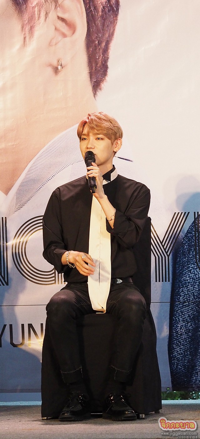 ซังกยุน : จำได้ว่าตอนเขียนมันยากมาก ไม่เหมืินภาษาเกาหลีเพราะลากยาว ส่วนตัวผมเป็นคนที่ลายมือไม่ค่อยสวยอยู่แล้ว ผมเลยเขียนแล้วคิดในใจว่าทุกคนจะอ่านออกหรือเปล่า ( ทำท่าเขียนตอนตอบคำถาม )
