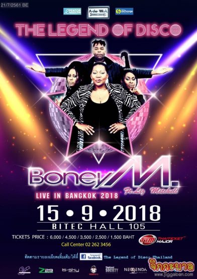 เตรียมพบกับคอนเสิร์ต The Legend of Disco Boney M. Live in Bangkok 2018 ที่จะปลุกตำนานยุคดิสโก้ให้กลับมาอีกครั้ง กับศิลปิน Boney M. สุดยอดตำนานดิสโก้ยุค 80-90