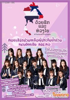 จากเหตุการณ์เขื่อนแตกน้ำท่วมที่แขวงอัตตะปือ (ATTAPEU) สปป.ลาว ทำให้พี่น้องชาวลาวเสียชีวิต และไร้ที่อยู่จำนวนมาก ด้วยความรักและห่วงใยจากพี่น้องชาวไทย BNK 48 ได้ร่วมกับ WORKPOINT, TNN 24 มูลนิธิไทยพึ่งไทย และกลุ่มธุรกิจต่างๆ ได้ร่วมใจกันจัดคอนเสิร์ต #ThailndforAttapue