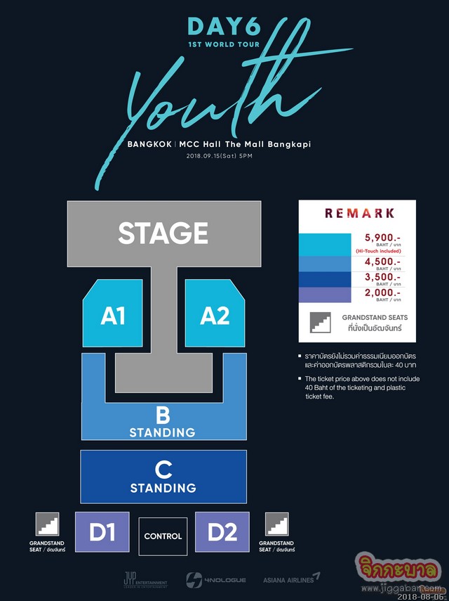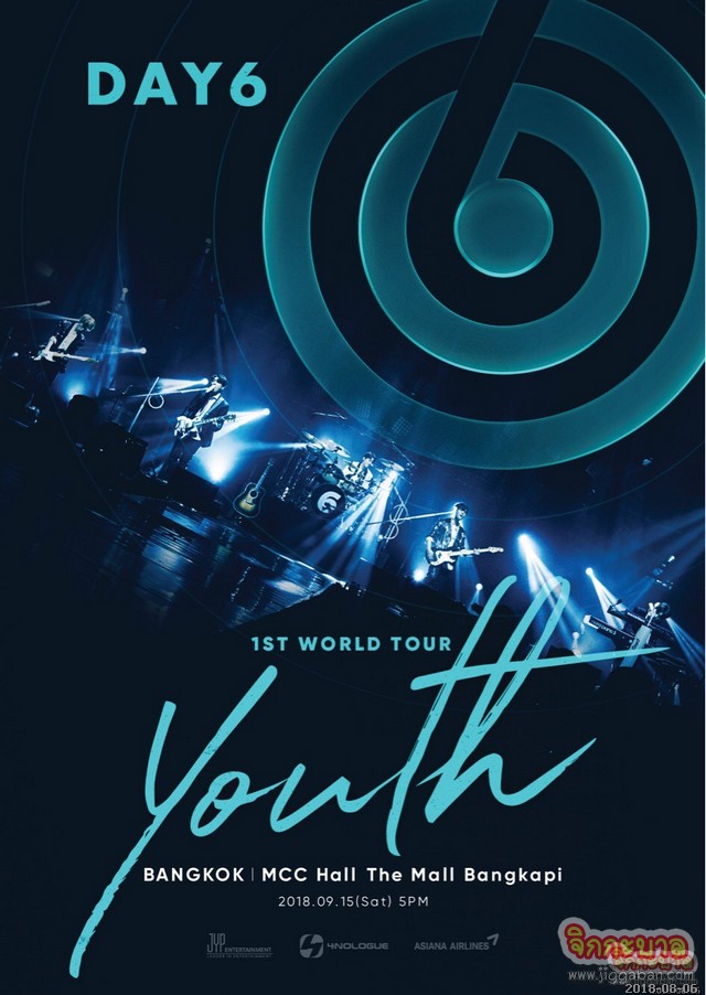 4NOLOGUE (โฟร์โนล็อค) จับมือ JYP Entertainment (เจวายพี เอ็นเตอร์เทนเม้นท์) จัด “DAY6 1ST WORLD TOUR ‘YOUTH’ IN BANGKOK” World Tour ครั้งแรก ของ 5 หนุ่ม DAY6 (เดย์ซิกซ์) “ซองจิน-ปาร์ค ซองจิน,เจ-ปาร์ค เจฮยอง,ยองเค-คัง ยองฮยอน,วอนพิล-คิม วอนพิล,โดอุน-ยุน โดอุน” ที่จะจัดขึ้นในวันเสาร์ ที่ 15 กันยายน 2561 ซึ่งงานนี้ My Day (ชื่อแฟนคลับ) ที่ซื้อบัตรในราคา 5,900 บาท จะได้สิทธิพิเศษ All HI TOUCH ทุกที่นั่งแบบไม่ต้องลุ้น โดยเริ่มจำหน่ายบัตรวันที่ 11 สิงหาคม 2561 ทาง www.thaiticketmajor.com