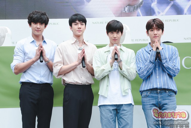 หลังจากสร้างปรากฏการณ์ TALK OF THE TOWN ไปเมื่อ 2 ปีก่อน ปีนี้ ที่สุดของเคป๊อบแห่งทศวรรษ EXO (เอ็กโซ) ขอส่ง 4 สมาชิกสุดฮอต ซูโฮ (Suho), แบคฮยอน (Baekhyun), ชานยอล (Chanyeol) และ เซฮุน (Sehun) กลับมาเยือนไทยอีกครั้ง ในฐานะแบรนด์พรีเซ็นเตอร์อย่างเป็นทางการ กับโอกาสสุดพิเศษที่สุดยอดแบรนด์ผลิตภัณฑ์บำรุงผิวและเครื่องสำอางอันดับ 1 จากประเทศเกาหลี “NATURE REPUBLIC” (เนเจอร์ รีพับบลิค) จัดกิจกรรม “JOURNEY TO NATURE REPUBLIC WITH EXO IN BANGKOK 2018” พร้อมเปิดตัว 3 ผลิตภัณฑ์กันแดดใหม่เอาใจคนรักสุขภาพผิว ก่อนร่วมแจกลายเซ็นให้ผู้โชคดีจาก Nature Republic ณ ลาน SQUARE D หน้าศูนย์การค้าเซ็นทรัลเวิลด์ เมื่อวันที่ 6 สิงหาคม ที่ผ่านมา พร้อมแฟนคลับที่มารอคอยกันอย่างแน่นขนัดกว่า 10,000 ชีวิต ทำให้ไม่ว่าจะมองไปทางไหนก็เห็นแต่ฝูงชนที่หลั่งไหลกันเข้ามาบริเวณงานจบแทบไม่มีที่ยืน ตั้งแต่ลานหน้าศูนย์การค้าเซ็นทรัลเวิลด์ ถึงแยกราชประสงค์