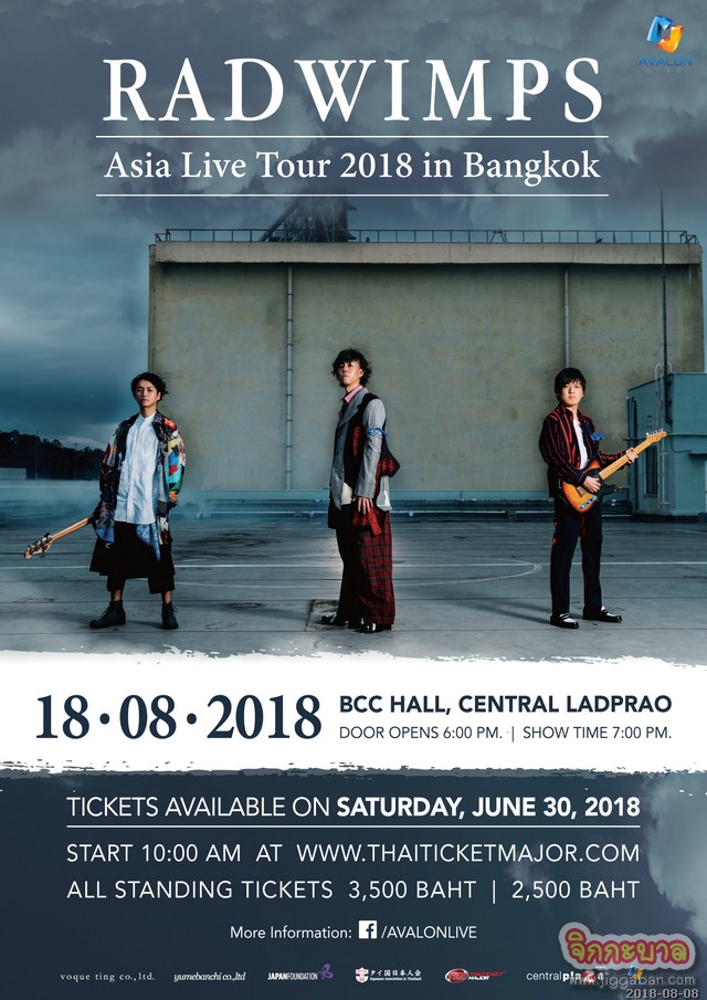 “RADWIMPS Asia Live Tour 2018 in Bangkok” 18 สิงหาฯ นี้!!