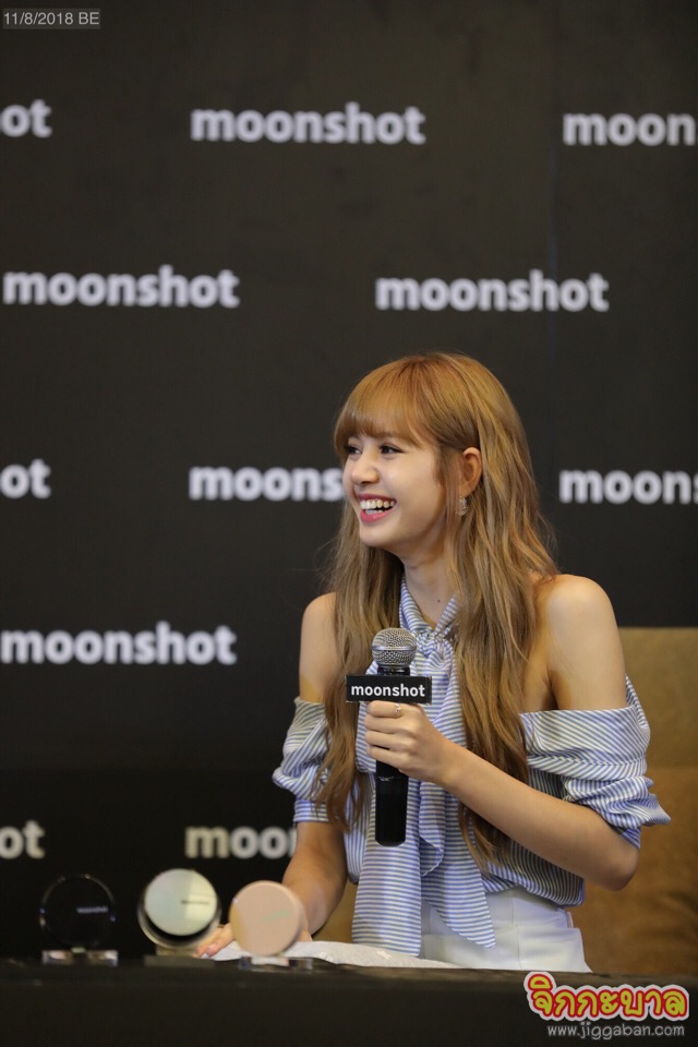 บริษัท มิลเล่ (ไทยแลนด์) จำกัด ตัวแทนจำหน่ายเครื่องสำอางแบรนด์ moonshot หนึ่งเดียวในประเทศไทย แบรนด์ที่มาแรงแซงโค้งติดตลาดในวงการเครื่องสำอางสำหรับสาวไทยเป็นอย่างมาก โดยมีผลิตภัณฑ์ครบครัน เช่น รองพื้น, แป้ง, อายไลเนอร์, อายแชโดว์, มาสคาร่า, ลิปสติก, สกินแคร์ เป็นต้น ซึ่งล่าสุดทางแบรนด์ได้คว้าตัวสาวไฟแรง ลลิษา มโนบาล หรือ ลิซ่า สมาชิกวง BLACKPINK มาเป็น พรีเซนเตอร์คนล่าสุด เอาใจชาว blink Thailand จัดงานแถลงข่าว “moonshot x LISA 2018 LISA The 1st FAN SIGN IN BANGKOK” งานเอ็กซ์คลูซีฟแฟนไซน์ครั้งแรกของสาวลิซ่าในประเทศไทย ที่มาร่วมงานแจกลายเซ็นในฐานะพรีเซนเตอร์ของแบรนด์เครื่องสำอางสายเกาอย่าง moonshot พร้อมมาแจกความฟินให้กับแฟนคลับในกิจกรรมครั้งนี้ และผู้ที่เป็น Top Spender ที่จะได้รับสิทธิ์เอ็กซ์คลูซีฟกว่าใครภายในงาน ทั้งโปสเตอร์พร้อมลายเซ็น และได้ถ่ายรูปคู่กับสาวลิซ่าอีกด้วย นอกจากนี้ยังได้พบกับเหล่าเซเลบริตี้ อาทิ แปม ไกอา, จันจิ ไกอา, แกรนด์ กรณ์ภัสสร และอีกมากมายที่มาร่วมงานในครั้งนี้ ณ โรงแรมปทุมวัน ปริ้นเซส