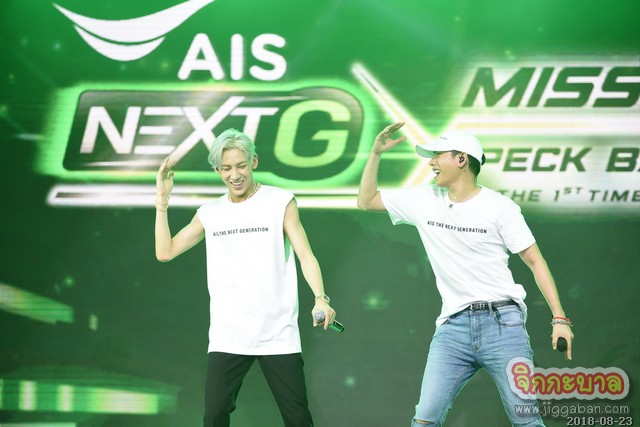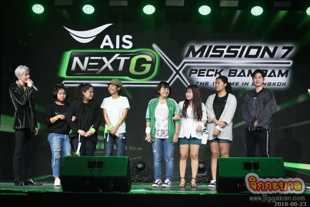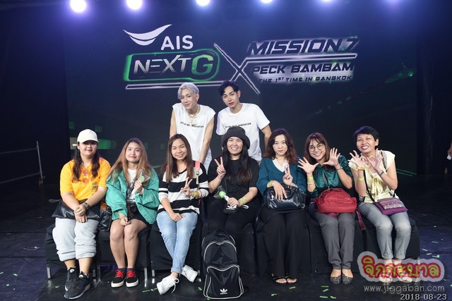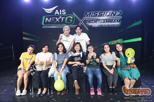 บรรยากาศภายในงาน “MISSION 7 : AIS NEXT G x PECK BAMBAM THE 1ST TIME IN BANGKOK” เต็มไปด้วยความสุขจากเหล่าพี่นุชและน้องอากาเซผู้โชคดีจากเอไอเอสกว่า 4,000 คน โดยเปิดงานด้วยโชว์จากสองหนุ่ม “เป๊ก” และ “แบมแบม” ที่มาแดนซ์แบทเทิลในเพลง “AIS NEXT G” แบบสุดฟิน จากนั้นหนุ่ม “เป๊ก” ขอฉายเดี่ยวควงไมค์ร้องเพลง “โทษที่เอาแต่ใจ”, “ไม่มีใครรู้” อ้อนบรรดานุชจนเคลิ้มกันไปทั้งงาน ส่วนหนุ่ม “แบมแบม” ก็ไม่น้อยหน้า ขอโชว์เดี่ยวร้องเพลง “Shopping Mall” ที่ไม่เคยร้องที่ไหนมาก่อน เรียกเสียงกรี๊ดจากเหล่าอากาเซกึกก้องทั้งงาน ก่อนทีมอากาเซและทีมนุชจะดวลเกมกันอย่างสนุกสนาน อาทิ เกมเล่นให้เร็วตอบให้ไว, เก้าอี้ดนตรี speed up งานนี้แฟนๆ ได้ใกล้ชิดแบบที่สองหนุ่มเดินลงจากเวทีไปแจกน้องอุ่นใจถึงมือและถ่ายรูปสุดใกล้ชิด ทำเอาฟินสุดๆ ก่อนจะส่งท้ายกันที่สองหนุ่ม “เป๊ก” และ “แบมแบม” สอนท่าเต้น AIS NEXT G ให้แฟนๆ ร่วมสร้างปรากฏการณ์แฟลชม็อบแดนช์ AIS NEXT G ใจกลางเมือง เรียกว่าทั้งอบอุ่น คึกคัก ครบทุกอรรถรสจริงๆ!