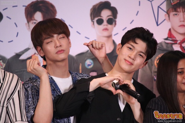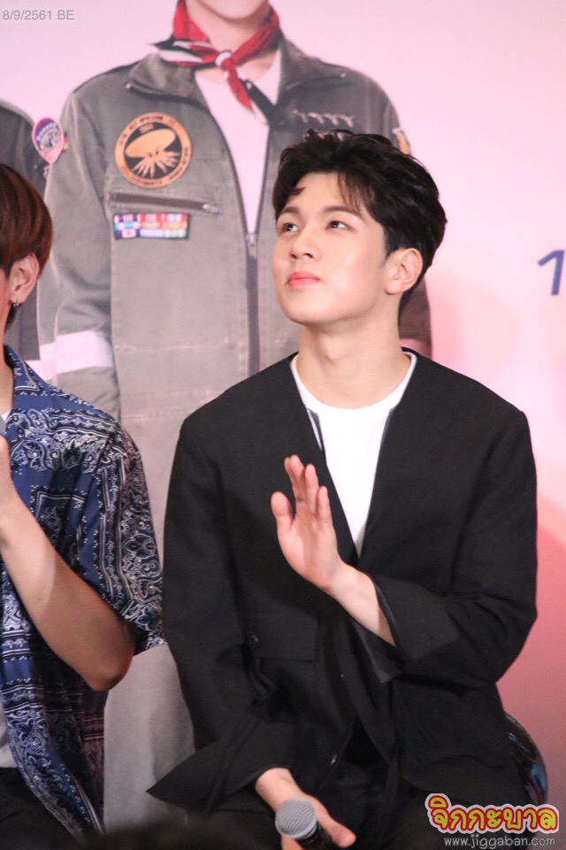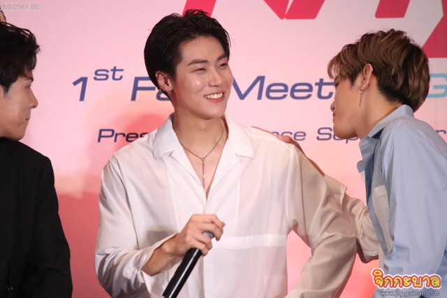 ถึงตาซึงฮยอบบ้าง “ชาฮุน เห็นอย่างนี้เนี่ยไม่เรียบร้อยเลยครับ พูดมากเหมือนอาจุมม่า ปกติเป็นคนร่าเริง อบอุ่น เช่น ซ้อมเสร็จแล้วเดี๋ยวไปกับเราเถอะ แต่เขาจะบอกว่าไม่ไป แต่ไปรออยู่ข้างนอก” พิธีกรเสริม “แสดงว่าเป็นคนไม่พูดแต่ทำเลย”ชาฮุนบอกว่า “พูดก็เยอะ ทำก็เยอะครับ ผมว่าผมก็เสียงดังจริงๆด้วยครับ” ช็อตนี้ฮากันทั้งลาน ก่อนชาฮุนจะนิยามบ้าง “พี่กวังจิน ปกติแล้วร่างกายมนุษย์จะมีน้ำ 70% แต่พี่กวังจินมีโปรตีน 70% ครับ เขาจะอยู่ไม่ได้เลยถ้าไม่ได้ออกกำลังกายแม้แต่ชั่วโมงเดียว สิ่งแรกที่ทำหลังมาถึงเมืองไทยคือสำรวจว่ามีฟิตเนสหรือเปล่า? เมื่อ 10 นาทีที่ผ่านมา มีการค้นหาว่าโปรตีนในเมืองไทยมีขายที่ไหน ล้อเล่นนะครับ พี่กวังจิน อยู่ในค่าย FNC มานานที่สุดก็เลยดูแลน้องๆอย่างดี ทำตัวให้น้องๆเคารพครับ” พิธีกรถามต่อ “เวลาซ้อมก็เยอะ เวลาอยู่ด้วยกันก็เยอะ เอาเวลาไหนไปออกกำลังกาย?” แจฮยอนแย่งตอบ “นอกจากเวลาที่พูดมาคือออกกำลังกายครับ ไม่นอนครับ เวลานอนก็ออกกำลังกายครับ”