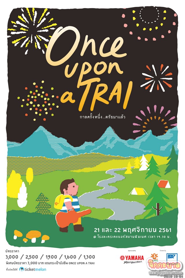 อย่ารอช้ารีบไปจับจองหาซื้อบัตรคอนเสิร์ต “Once upon a Trai” : กาลครั้งหนึ่ง..ตรัยมาแล้ว ได้แล้วที่ Ticketmelon บัตรราคา 3,000 บาท, 2,500 บาท, 1,900 บาท, 1,600 บาท, 1,300 บาท แล้วมาร้องเพลงแห่งความสุขด้วยกัน ในวันพุธ ที่ 21 และวันพฤหัสบดี ที่ 22 พฤศจิกายน 2561 ณ โรงละครเคแบงค์สยามพิฆเนศ สยามสแควร์วัน ชั้น 7 มาร่วมแบกเป้ขึ้นภูเขาแห่งความสุขไปด้วยกันจ้า