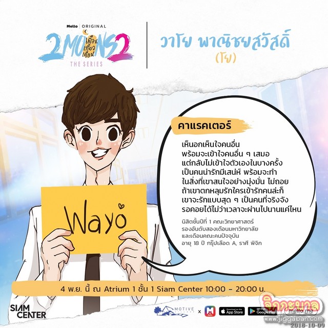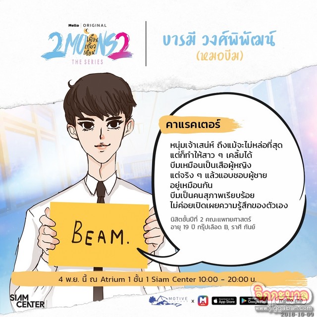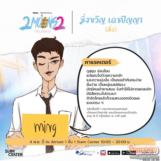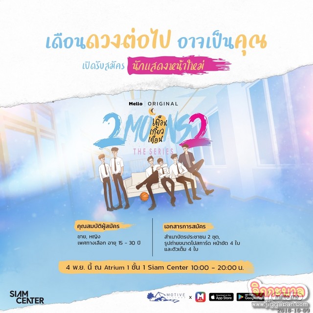 เปิดรับสมัครนักแสดงหน้าใหม่ เดือนดวงต่อไปอาจเป็นคุณ! หลังจากที่ปล่อยให้แฟนๆรอคอยมาเกือบ 2 ปี วันนี้Mello ผู้ผลิตวีดีโอคอนเทนท์และเอนเตอร์เทนเมนท์แพลตฟอร์ม ภายใต้การบริหารงานโดย BECi Corporation จำกัดร่วมกับ Motive Village ผู้ถือลิขสิทธิ์หลัก พร้อมส่งออริจินัลซีรีส์วายสุดฮอตที่ทุกคนเรียกร้องให้กลับมาอย่าง “2Moons2” เดือนเกี้ยวเดือนติดตามได้ทาง Mello Thailand เร็วๆนี้แน่นอน