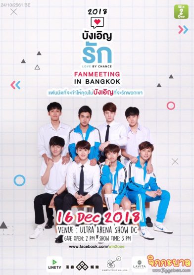สาวกสายวายเคลียร์คิวและเสียงกรี๊ดไว้ให้พร้อม เพราะเหล่านักแสดงจากซีรีส์สุดฮอตแห่งยุค “บังเอิญรัก” นำโดย เพิร์ธ – ธนพนธ์ , เซ้นต์ – ศุภพงษ์ , มีน – พีรวิชญ์ , มาร์ค – ศิวัช , แปลน รัฐวิทย์ , กัน – ณภัทร , ไตเติ้ล – กีรติ , เอิร์ธ – กัษมนณัฏฐ์ และอีกมากมาย เตรียมแท็คทีมมาระเบิดความฟินสนั่นเมืองกับงานแฟนมีตติ้งเต็มรูปแบบครั้งแรกในประเทศไทย ‘2018 Love by Chance Fan Meeting in Bangkok’ วันที่ 16 ธันวาคมนี้ ณ Ultra Arena Show DC โดยผู้จัด Win2One นำโดย คุณศรวัสย์ – คุณนงนุช จุฑาพชราภรณ์ และ คุณอรพรรณ วัลลถาวรพัฒน์ ผู้บริหารไฟแรง อาสาพาเอฟซีไปสัมผัสโมเม้นต์ฟินแก้มแตกแบบไม่เคยเกิดขึ้นที่ไหนมาก่อน