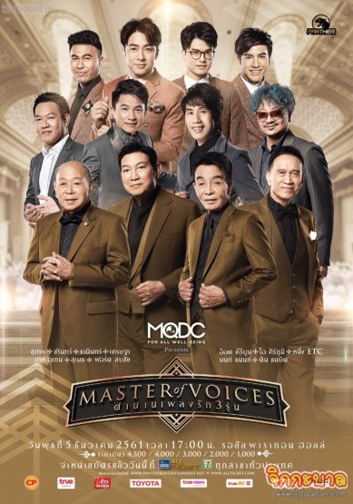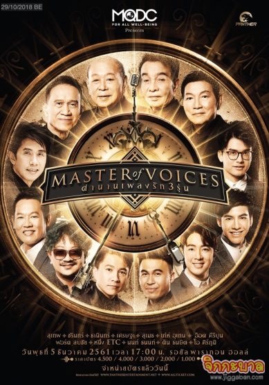 องค์กรพันธมิตรทางด้านดนตรีอย่างบริษัทแมกโนเลีย ควอลิตี้ ดีเวล็อปเม้นต์ คอร์ปอเรชั่น จำกัด (MQDC) และ แพนเทอร์ เอ็นเทอร์เทนเมนท์ จับมือร่วมกันจัดคอนเสิร์ตเอาใจแฟนเพลงทั้ง 3 รุ่นที่ชื่นชอบเพลงลูกกรุงสุดอมตะมาร่วมทวนเข็มนาฬิกาย้อนสู่ห้วงเวลากันใน คอนเสิร์ต “MQDC presents Master of Voices ตำนานเพลงรัก 3 รุ่น” คอนเสิร์ตที่จะมอบความสุขความทรงจำ ให้แก่ผู้ฟัง 3 รุ่น 3 วัย ได้มีความประทับใจที่ดีร่วมกัน พบโชว์ใหม่ ที่เกิดจากแรงบันดาลใจของศิลปินรุ่นใหม่ร่วมแสดงความกตัญญูต่อศิลปินแห่งชาติ ร่วมสืบสานบทเพลงอมตะในอดีต ถ่ายทอดโดยศิลปิน 3 เจนเนอร์เรชั่น อาทิ รุ่นอมตะ ได้แก่ สุเทพ วงศ์กำแหง, ชรินทร์ นันทนาคร, ธานินทร์ อินทรเทพ, เศรษฐา ศิระฉายา , รุ่นฮิต ได้แก่ สุเมธ องอาจ, เท่ห์ อุเทน พรหมมินทร์, อ๊อด คีรีบูน, ฟอร์ด สบชัย ไกรยูรเสน และ รุ่นใหม่ ได้แก่ หนึ่ง อีทีซี , นนท์ ธนนท์, ต้น ธนษิต และ โอ ศิร์ภูมิ ซึ่งจะเปิดการแสดง ในวันพุธที่ 5 ธันวาคม 2561 ณ รอยัล พารากอน ฮอลล์ ชั้น 5 ศูนย์การค้า สยามพารากอน ตั้งแต่เวลา 17.00 น.(ประตูเปิด 16.00 น.)