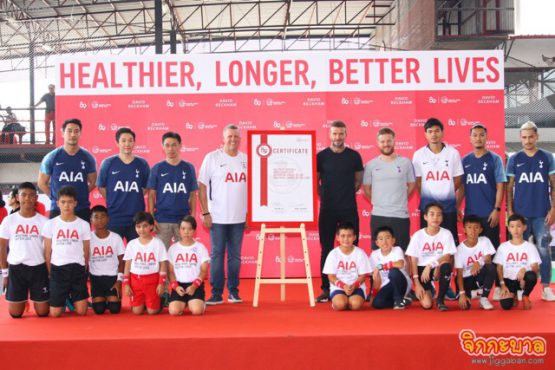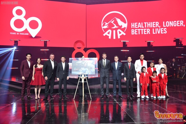 ได้ฤกษ์ดีครบรอบ 80 ปี เอไอเอ ประเทศไทย เอไอเอเลยจัดหนักจัดเต็มเพื่อส่งมอบความสุขให้กับคนไทยโดยมีคนดังจากวงการบันเทิงร่วมงานมากมาย โดยในช่วงเช้ายังมีกิจกรรม “เอไอเอ ฟุตบอล คลินิก” โดยเบ็คแฮม โค้ชและนักเตะชื่อดังทั้งในระดับโลกและประเทศไทย รวมถึงพระเอกหนุ่ม “ป้อง-ณวัฒน์ กุลรัตนรักษ์” และนักร้องหนุ่มเสียงดี “บอย-อนุวัฒน์ สงวนศักดิ์ภักดี” เข้าร่วมกิจกรรม พร้อมโชว์สกิลขั้นเทพ ถ่ายทอดทักษะการเล่นฟุตบอลให้กับนักเตะรุ่นจิ๋ว ณ สนามเอสซีจี สเตเดี้ยม เมืองทองธานี