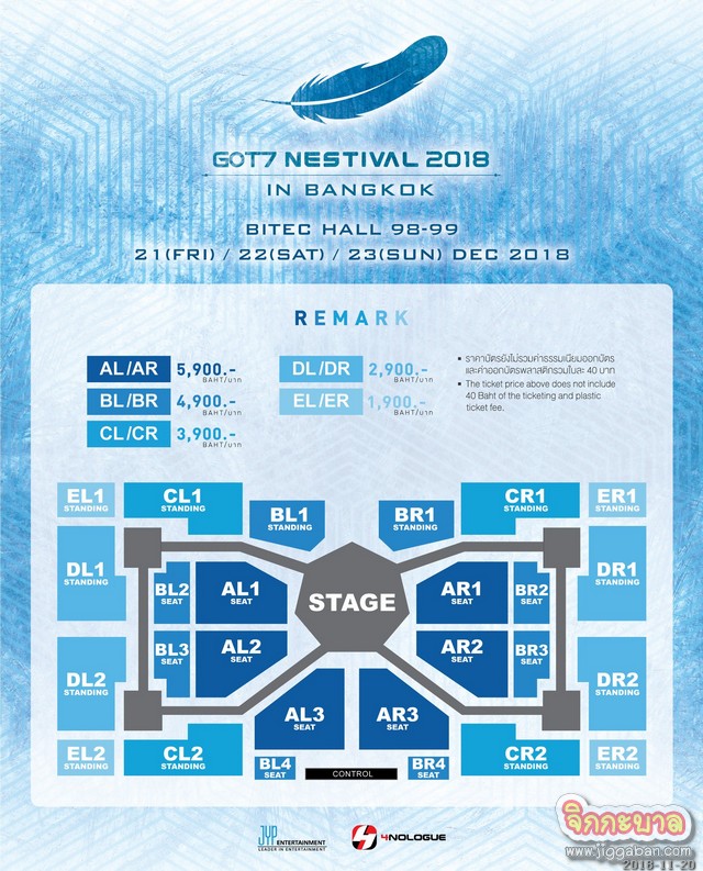 บัตรราคา : 5,900 (นั่ง) / 4,900 (ยืน,นั่ง) / 3,900 (ยืน) / 2,900 (ยืน) / 1,900 (ยืน) บาท