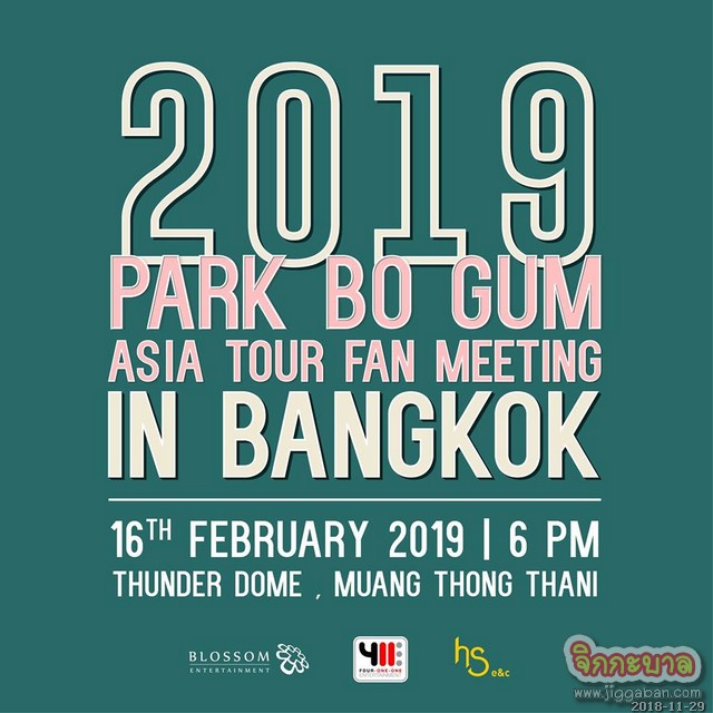 นั่งไม่ติดเก้าอี้กันเลยทีเดียว! ทันทีที่ผู้จัดยักษ์ใหญ่เมืองไทยอย่าง บริษัท โฟร์ วัน วัน เอ็นเตอร์เทนเม้นท์ จำกัด (Four One One Entertainment Co.,Ltd.) ประกาศโปรเจ็กต์ใหม่ล่าสุด เตรียมจัด 3 งานรวดในเดือนมกราคม และกุมภาพันธ์ 2562 เพราะของมันต้องมี ความฮอตระดับนี้ต้องมา.. เกิร์ลกรุ๊ปสุดฮอตชั่วโมงนี้ที่แฟนๆ รอคอย สี่สาว “แบล็กพิงค์” (BLACKPINK) เก้าหนุ่ม “สเตรย์คิดส์” (Stray Kids) น้องใหม่มาแรงอนาคตไกล และพระเอกหนุ่มขวัญใจประชาชนอย่าง “พัคโบกอม” (Park Bo Gum)