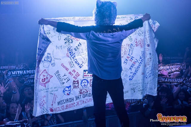 จบลงด้วยความประทับใจกับคอนเสิร์ตครั้งแรกของหนุ่มๆ วงร็อกหัวสุนัข MAN WITH A MISSION ถึงแม้จะบ่นว่าอากาศร้อนไปนิด แต่ก็ยังสนุกสนานไปกับคอนเสิร์ต 2 ชั่วโมง และพวกเขาก็ได้ขอบคุณแฟนๆ ที่มาคอนเสิร์ตในวันนี้ “พวกเรารู้สึกเป็นเกียรติมากที่ได้มีโอกาสมาเล่นที่ไทยเป็นครั้งแรก และสำหรับเอเชียทัวร์ในครั้งนี้ก็เป็นครั้งแรก และหวังว่าทุกคนจะชอบและขอบคุณที่มาในวันนี้ พวกเรามีความฝันว่าจะเที่ยวรอบโลกไปพร้อมๆ กับเล่นดนตรีให้ทุกคนได้ฟัง การเดินทางไปในที่ต่างๆ ก็สามารถเปลี่ยนชีวิตของคุณได้ เหมือนอย่างที่นี่ ในวันนี้” พร้อมทั้งยังพูดถึงอาหารไทยที่ได้ลอง ไม่ว่าจะเป็น “ต้มยำกุ้งอร่อย” “กะเพราอร่อย” “ผัดเผ็ดกบไม่เอา” แถมยังบอกอีกว่าพวกเขาจะกลับมาที่เมืองไทยอีกครั้งอย่างแน่นอน พวกเขาจะกลับมาอีกครั้งเมื่อไหร่นั้นก็ต้องจับตารอดูกันให้ดีๆ งานนี้ก็ต้องขอปรบมือให้ ผู้จัด ASIA MUSIC GROUP (เอเชีย มิวสิก กรุ๊ป) ที่ทำให้แฟนๆ ได้เจอตัวจริง เสียงจริงในครั้งนี้