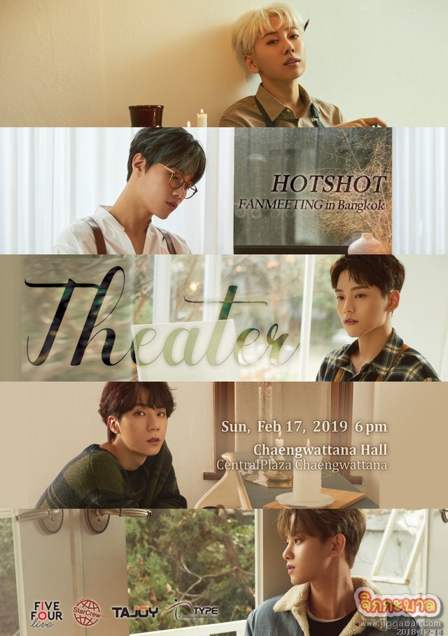 ประเดิมต้นปี 2562 กับงานดี ๆ จากผู้จัดใจดีเจ้าเดิม FIVE FOUR LIVE ด้วยการนำศิลปินจากค่าย StarCrew ENT(สตาร์ครูว์ อีเอ็นที) วง HOTSHOT (ฮอตชอต) ซึ่งประกอบด้วยสมาชิก “จุนฮยอก” Choi Junhyuk (ตำแหน่งเมนร้อง+ลีดเดอร์ ทั้งยังแต่งเพลงและเป็นโปรดิวเซอร์วงด้วย) / “ทิโมเทโอ” Kim Timoteo (ตำแหน่งซับโวคอล เต้น แต่งเพลง) / “ยุนซาน” Yoon San (ตำแหน่งแรปเปอร์) / “โกโฮจอง” Ko Hojung (ตำแหน่งเต้น) และ “โนแทฮยอน” Roh Taehyun (ตำแหน่งเมนเต้น) ที่ล่าสุดเพิ่งมีผลงานเพลงอัลบั้ม Early Flowering ไตเติ้ลแทร็ก 니가미워 (I Hate You) กับงานแฟนมีตติ้งครั้งแรกที่ประเทศไทยในงาน HOTSHOT FANMEETING in BANGKOK [HOTSHOT THEATER] วันที่ 17 กุมภาพันธ์ 2562 เวลา18.00 น. ณ แจ้งวัฒนะฮอลล์ ห้างสรรพสินค้าเซ็นทรัลพลาซา แจ้งวัฒนะ เหล่า HOTPLE (ฮอตพึล) ทั้งหลายที่รอคอยหนุ่ม ๆ เยือนไทยห้ามพลาดโอกาสที่จะมาให้กำลังใจและใกล้ชิดกับ HOTSHOT ได้ รอติดตามรายละเอียดเพิ่มเติมได้ทาง
