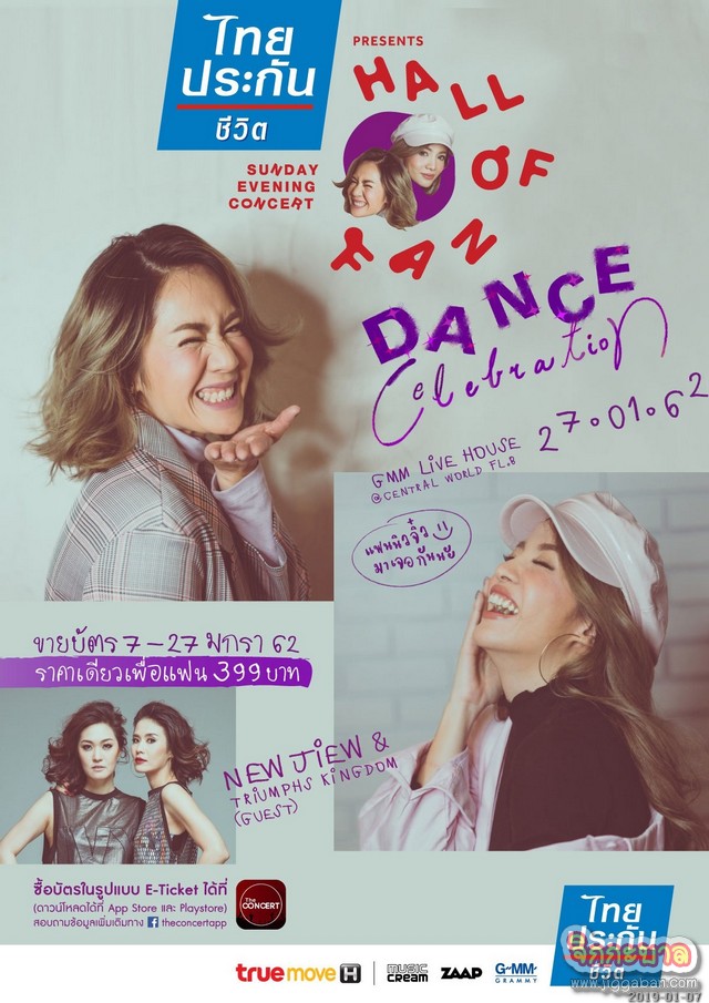 ประเดิมคอนเสิร์ตแรก ไทยประกันชีวิต Presents HALL OF FAN : SUNDAY EVENING CONCERT (ไทยประกันชีวิต พรีเซนต์ ฮอลล์ ออฟ แฟน : ซันเดย์ อีฟนิ่ง คอนเสิร์ต) กับคอนเซ็ปต์ DANCE CELEBRATION (แดนซ์ เซเลเบรชั่น) ของคู่ดูโอ 2 ยุค 2 สมัย นิว-จิ๋ว กับ ไทรอัมพ์ส คิงดอม ที่จะโคจรมาพบกันเป็นครั้งแรก เพื่อชวนแฟนๆ ร่วมฉลองปีใหม่กันอย่างต่อเนื่องไปกับเพลงฮิตมากมายที่ทุกคนสามารถร้องและเต้นตามได้อย่างสนุก ที่สำคัญงานนี้แฟนๆจะได้ฟัง 2 ซิงเกิ้ลใหม่ที่ นิว-จิ๋ว แยกกันร้องเป็นครั้งแรกบนเวทีนี้อีกด้วย พบกันในวันอาทิตย์ที่ 27 มกราคม 2562 ณ จีเอ็มเอ็ม ไลฟ์ เฮาส์ แอท เซ็นทรัลเวิลด์ ชั้น 8 บัตรราคาเดียวเพียง 399 บาท จำหน่ายบัตรคอนเสิร์ตแล้ววันนี้ในรูปแบบ E-Ticket (อีทิคเก็ต) ผ่านทาง Application (แอพพลิเคชั่น) : The Concert เท่านั้น!!! สามารถดาวน์โหลดแอพฯ คลิกเลย http://onelink.to/rm94xg (สามารถใช้ได้ทั้งระบบ iOS และ Android) และติดตามรายละเอียดเพิ่มเติมได้ที่ FB : HallOfFan รับรองว่าจากนี้ไปทุกเย็นวันอาทิตย์สิ้นเดือนของคุณจะมีแต่ความสุข ความสนุกอย่างแน่นอน!