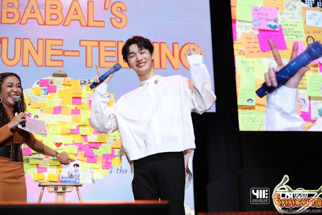 เข้าสู่ช่วง BABAL’S FORTUNE TELLING หรือ หนูขอมาพี่จัดให้ รีวิวงานแฟนมีตติ้งล่วงหน้าเก๋ๆ โดยแฟนคลับเขียนสิ่งที่คิดว่าจะเกิดขึ้นจริงในงานวันนี้ลงบนกระดาษโน้ต ซึ่งก็มีทั้งซีนห่มผ้าไทยตั้งท่าฟ้อนรำตามที่พิธีกรสอนสดๆ หรือขอให้เต้นเพลง 보여 (DAY BY DAY) สุดร้อนแรง รวมไปถึงส่ง WINK แบบน่ารักและเซ็กซี่ที่ทำเอาแฟนๆ กรี๊ดรัวๆ เพราะจีซองเล่นใหญ่จัด WINK ให้แบบคอมโบเซ็ต!! มีคำขอให้ Morning call ด้วยประโยคภาษาไทยว่า “หนูคะ ตื่นได้แล้วค่ะ” ตามด้วยประโยคชวนหวีดอย่าง “พี่รักหนูนะคะ” ยังไม่พอ! จัดไปอีกกับการมอบช่อดอกไม้ประกอบข้อความ “หนูขา พี่ให้ค่ะ” และจบช่วงนี้ไปแบบสวยๆ ด้วย “รักนะผับอัลของผม” ใจบางกว่าใครก็ผับอัลไทยยังไงล่ะ!! จากนั้นจีซองขอรีวิวงานแฟนมีตติ้งของตัวเองบ้างว่า “ผมร้องเพลง 왜내가아닌지 (WHY NOT ME?) แล้วทำให้ความร้อนแรงของแฟนๆ ชาวไทยกลายเป็นความชุ่มฉ่ำ” แน่นอนว่าเขาทำได้จริงเพราะเพลงนี้แฟนๆ อินหนักมากถึงขั้นน้ำตารื้นกันไป