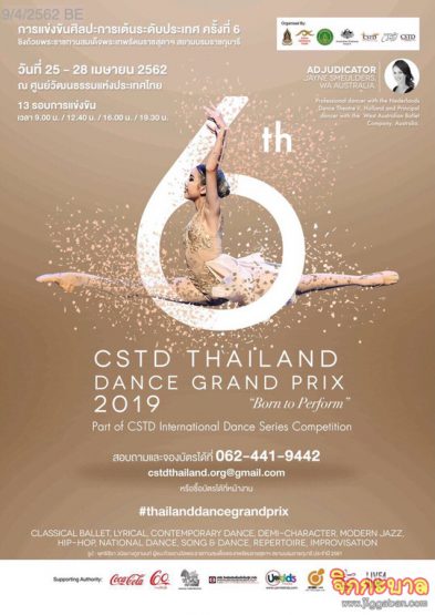 CSTD Thailand Dance Grand Prix ครั้งที่ 6 ในวันที่ 25-28 เมษายน ศกนี้ ณ หอประชุมใหญ่ ศูนย์วัฒนธรรมแห่งประเทศไทยโดยมีกรรมการตัดสินที่ได้รับรองมาตรฐานจากสถาบัน CSTD ประเทศออสเตรเลีย ซึ่งจะมีสถาบันสอนศิลปะการเต้นทั่วประเทศไทยได้ส่งเยาวชนได้ร่วมเข้าร่วมการแข่งขันในปีนี้เป็นจำนวนทั้งสิ้น 26 โรงเรียน มีเยาวชนเข้าร่วมกว่า 600 คน กว่า 700 ชุดการแข่งขัน ทั้งนี้เพื่อคัดเลือกเยาวชนไทยเข้าร่วมการแข่งขันในระดับนานาชาติ ในชื่อ CSTD Asia Pacific Dance Competition จัดโดยสถาบัน CSTD ประเทศออสเตรเลีย มีสมาชิกเข้าร่วมการแข่งขันมากกว่า 30 สถาบันการสอนศิลปะการเต้นของ 12 ประเทศในภาคพื้นเอเชียแปซิฟิก โดยในปี 2562 จัดขึ้นเป็นครั้งที่ 21 และเป็นที่น่ายินดีที่ในปีนี้ประเทศไทยได้รับเกียรติให้เป็นเจ้าภาพการแข่งขัน ซึ่งจะจัดขึ้นในระหว่างวันที่ 22-25 สิงหาคม 2562 ณ โรงละคร อักษรา คิงส์ เพาเวอร์ กรุงเทพฯ