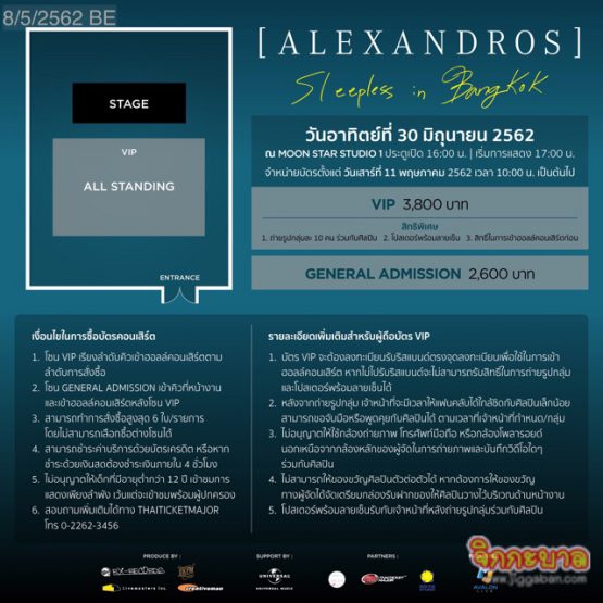 [ALEXANDROS] Sleepless in Bangkok ปักหมุดวันขายบัตร 11 พ.ค.นี้