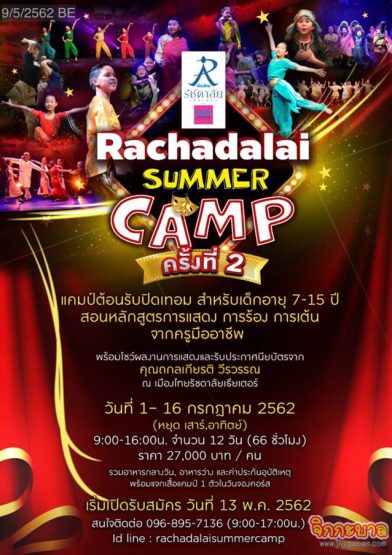 สอบถามรายละเอียดเพิ่มเติมได้ที่ โทร.096-8957136 (9.00-17.00 น.) ID Line : rachadalaisummercamp