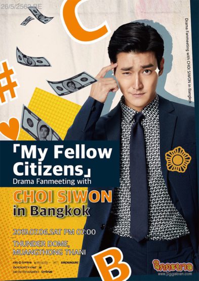 หนุ่มหล่อมากเสน่ห์มากความสามารถ ที่ได้ฝากผลงานการแสดงไว้ในซีรี่ส์เรื่อง My Fellow Citizens อย่างหนุ่มชเวซีวอน กำลังจะมาสร้างความทรงจำสุดพิเศษกับแฟนๆ ชาวไทยในงาน 「My Fellow Citizens」 Drama Fanmeeting with Choi Siwon in Bangkok ที่จะจัดขึ้นในวันเสาร์ที่ 6 กรกฎาคม 2562 ณ ธันเดอร์โดม เมืองทองธานี