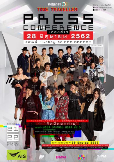 แถลงข่าววันศุกร์ที่ 28 มิถุนายน 2562 นี้ เวลา 14.00 – 16.00 น. ศิลปินครบยกค่าย ไวท์มิวสิค ณ Lobby ตึก GMM GRAMMY ใครไม่มาอดฟินนะจ๊ะ!