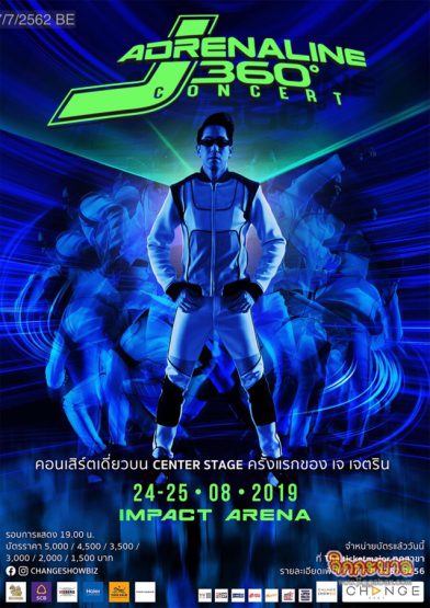 และเป็นประจำกับทุกคอนเสิร์ตของ CHANGE SHOWBIZ ที่จะมอบรายได้ส่วนหนึ่งให้กับมูลนิธิหรือองค์กรการกุศล ซึ่งในครั้งนี้ รายได้ส่วนหนึ่งจากJ ADRENALINE 360° Concert จะนำไปมอบให้กับ มูลนิธิคณะกรรมการพารา ลิมปิกแห่งประเทศไทย อีกด้วย ล็อคคิวชาวแก๊งค์ของคุณให้ดี แล้วเตรียมตัว #กระโดดขึ้นมาเซ่ พร้อมปลดปล่อยทุกท่าไม้ตายที่มีไปพร้อมกันใน วันที่ 24-25 สิงหาคมนี้ ณ อิมแพ็ค อารีน่า เมืองทองธานี เริ่มจำหน่ายบัตรแล้ววันนี้ที่ THAITICKET MAJOR ทุกสาขา บัตรราคา 5,000 / 4,500 / 3,500 / 3,000 / 2,000 / 1,500 บาท กดให้ทัน แล้วมามันส์ให้ฮอลล์แตก!! ติดตามข่าวสารหรืออัพเดทรายละเอียดเพิ่มเติมได้ทาง https://www.facebook.com/CHANGEshowbiz และ Instagram @CHANGEshowbiz