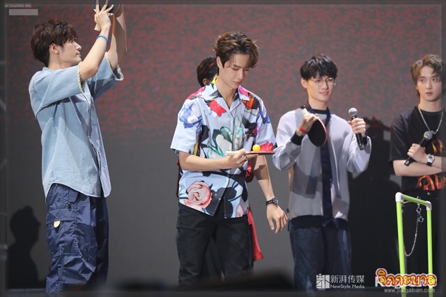 เข้าสู่งานแฟนมีตติ้งในช่วงเย็นท่ามกลางบรรยากาศที่ชุ่มฉ่ำของสายฝน ทันทีที่เสียงเพลงและ VCR เปิดตัวนักแสดงดังขึ้น บรรดาแฟนคลับต่างส่งเสียงกรี๊ดต้อนรับนักแสดงทั้ง 8 คนอย่างสุดพลัง จากนั้นพิธีกรของงาน ดีเจเวฟ-คูเป่ยจง กล่าวเปิดงานอย่างเป็นทางการ โดยหนุ่มน้อย ซ่งจี้หยาง กล่าวทักทายแฟนๆ เป็นคนแรกว่า “วันนี้ดีใจมากๆ ที่ได้มาจัดงานแฟนมีตติ้งที่ประเทศไทยเป็นครั้งแรกครับ” ด้าน เซียวจ้าน บอกว่า “ดีใจมากๆ ที่ได้มาเมืองไทยครับ งานในค่ำคืนนี้แฟนๆ ทุกคนจะต้องฟินแน่ๆ” สุดหล่อ หวังอี้ป๋อ ไม่รอช้ารีบพูดบ้างว่า “หวังว่าทุกคนจะมีความสุขกับงานแฟนมีตติ้งครั้งนี้นะครับ” หนุ่มหลิวไห่ควาน ทักทายคำแรกเป็นภาษาไทยว่า “สวัสดีครับ” และบอกว่า “แฟนๆ ชาวไทยน่ารักทุกคนเลยครับ” ทำเอาแฟนคลับฟินเคลิ้ม