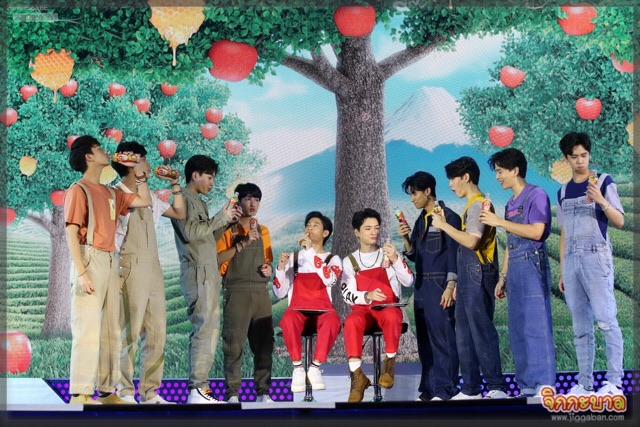 บรรยากาศภายในงาน เต็มไปด้วยความสนุก สดชื่น จากเหล่าเกมเมอร์และแฟนคลับของ 10 หนุ่มที่มาเชียร์กันล้นหลาม โดยเสียงกรี๊ดดังกระหึ่มขึ้นเมื่อเปิดตัวภาพยนตร์โฆษณาผลิตภัณฑ์ใหม่ล่าสุด “โออิชิ แอปเปิล ฮันนี่” พร้อมการปรากฏตัวของ 10 หนุ่มพรีเซนเตอร์ในโชว์ซิทคอมน่ารักๆ เมื่อ คริส-พีรวัส, สิงโต-ปราชญา, ออฟ-จุมพล, กัน-อรรถพันธ์, เต-ตะวัน, นิว-ฐิติภูมิ มานั่งเล่นเกมส์ ROV ใต้ต้นแอปเปิลอาโอโมริ จนเกิดอาการหัวร้อน แล้วอีกสี่หนุ่ม นนน-กรภัทร์, ชิม่อน-วชิรวิชญ์, ลี-ฐานัฐพ์ และ ซิง-หฤกษ์ เดินมาเห็นเข้าจึงรีบส่งตัวช่วย ‘โออิชิ แอปเปิลฮันนี่’ และ ‘โออิชิ แอปเปิลฮันนี่ ไลท์’ สูตรไม่มีน้ำตาล มาเติมความสดชื่น ดับอาการหัวร้อนไว้ทัน หลังจากนั้นหนุ่มๆ มาร่วมพูดคุยถึงประสบการณ์สุดมันส์กับเกมส์ ROV แล้วฟินต่อรัวๆ กับฟินาเล่ไฮไลต์จาก คริส-สิงโต ที่แปลงโฉมเป็นเหล่าฮีโร่ในเกมส์มาโชว์ต่อสู้กันบนเวทีเอาใจเกมเมอร์ และร่วมกิจกรรมสุดเอ็กซ์คลูซีฟกับเหล่าแฟนคลับ