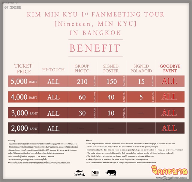 อีกอึดใจเดียวแฟนคลับในเมืองไทยของ “คิมมินกยู” (KIM MIN KYU) ชายหนุ่มหน้าตาดี ความประพฤติเด่น ซึ่งแจ้งเกิดในฐานะศิลปินฝึกหัดจากต้นสังกัด เจลลี่ฟิช เอ็นเตอร์เทนเม้นท์ (Jellyfish Entertainment) ผู้เข้าแข่งขันรายการเซอร์ไววัลยอดนิยมที่เป็นปรากฏการณ์ไปทั่วทั้งเอเชีย โปรดิวซ์ เอ็กซ์ วันโอวัน (PRODUCE X 101) ก็จะได้ฟินเต็มอัตรากับ “คิมมินกยู เฟิร์ส แฟน มีตติ้ง ทัวร์ [ไนน์ทีน, มินกยู] อิน แบงคอก” (KIM MIN KYU 1st FAN MEETING TOUR [Nineteen, MIN KYU] IN BANGKOK) กิจกรรมแฟนมีตติ้งในต่างประเทศซึ่งจะจัดขึ้นที่ประเทศไทยเป็นคิวแรก งานนี้ บริษัท โฟร์ วัน วัน เอ็นเตอร์เทนเม้นท์ จำกัด (Four One One Entertainment Co.,Ltd.) ของบิ๊กบอสคนเก่ง กึ้ง–เฉลิมชัย มหากิจศิริ ผู้มุ่งมั่นตั้งใจในการพาไอดอลในอุดมคติมาพบแฟนๆ ก่อนที่ตารางงานของเขาจะแน่นไปกว่านี้ พร้อมเสิร์ฟสิทธิพิเศษ ‘ไฮทัชทุกที่นั่ง’ ให้ได้สบตา-สัมผัสมือ-สื่อความนัย-โกยความสุขกลับบ้านหนำใจกันไปทุกที่นั่ง! แถมยังเพิ่มเติมสิทธิพิเศษช่วง ‘Goodbye event’ ให้กับผู้เข้าชมงานในครั้งนี้ทุกท่านแบบไม่ต้องรอลุ้น ไม่ต้องรอแต้มบุญกันอีกด้วย!! และล่าสุดกับการประกาศกระชับพื้นที่ เปลี่ยนสถานที่จัดงานใหม่เป็น โชว์ ดีซี อัลตร้า อารีน่า ชั้น 6 (SHOW DC Ultra Arena) ซึ่งรับรองเลยว่าวันเสาร์ที่ 9 พฤศจิกายน 2562 ที่จะถึงนี้ แฟนๆ ตั้งแต่แถวแรกถึงแถวหลังสุด จะได้ฟินจัดจับใจไปกับหนุ่ม “คิมมินกยู” แบบไม่ต้องพึ่งกล้องส่องทางไกลแต่อย่างใด!!