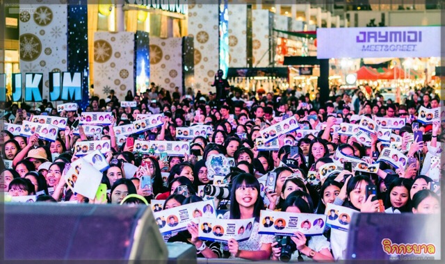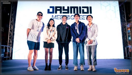 ผ่านไปแล้วกับบรรยากาศสุดอบอุ่น ในงาน JAYMIDI MEET&GREET ณ ลาน SQAURE B หน้าศูนย์การค้าเซ็นทรัลเวิลด์ เมื่อสัปดาห์ที่ผ่านมา ที่ศิลปินจาก ค่ายเจมีดี (JAYMIDI) มาร้อง เล่น เต้น และพบปะพูดคุยกับแฟนๆอย่างใกล้ชิด นำทีมโดย พี่ใหญ่JAONAAY (เจ้านาย วรรธนะสิน) ตามด้วยศิลปินหนุ่มหล่อเจ้าเสน่ห์คนล่าสุด JK (เจ้าขุน วรรธนะสิน) พร้อมด้วย ศิลปินหญิงคนแรกของเจมีดี SMILE (สไมล์ – ภาลฎา ฐิตะวชิระ) และแขกรับเชิญคนพิเศษ JAOSMUT (เจ้าสมุทร วรรธนะสิน) ซึ่งเหล่าแฟนคลับต่างมาจับจองที่นั่งหน้าเวทีตั้งแต่เช้ากันเลยทีเดียว เมื่อถึงเวลา พิธีกรรุ่นใหญ่อย่าง อ้น ศรีพรรณ ชื่นชมบูรณ์ และ ดีเจเอกกี้ เอกชัย เอื้อสังคมเศรษฐ ก็ขึ้นมาทักทายเหล่าแฟนคลับที่มาให้กำลังใจกันแน่นขนัดเต็มพื้นที่จัดงาน มีกิจกรรมเล่นเกมต่างๆอุ่นเครื่องด้วยความสนุกสนานกันเล็กน้อย