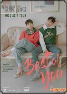 ห้ามพลาด! B Of You 2020 Asia Tour ‘Best Of You’ in Bangkok วันเสาร์ที่ 28 มีนาคม 2563 เวลา 18:00 น. ณ อัลตร้า อารีน่า โชว์ดีซี ในงานแฟนมีตติ้งครั้งนี้แฟน ๆ จะได้เห็นพัฒนาการทางด้านการร้องและการเต้น เพราะสองหนุ่มเตรียมเพลงไว้มากมายประหนึ่งมินิคอนเสิร์ต รวมถึงกิจกรรมสุดน่ารักที่ตั้งใจคิดขึ้นเพื่อแฟน ๆ ชาวไทยอีกด้วย B Of You 2020 Asia Tour ‘Best Of You’ in Bangkok เปิดจำหน่ายบัตรพร้อมกันวันอาทิตย์ที่ 1 มีนาคม 2563 ตั้งแต่ 10:00 น. เป็นต้นไปทาง www.doconcert-ticket.com สามารถติดติดตามทุกความเคลื่อนไหวผ่านทาง www.facebook.com/doconcert และ ทวิตเตอร์ @doconcert แฮทชแทค #BOfYouAsiaTourinBKK